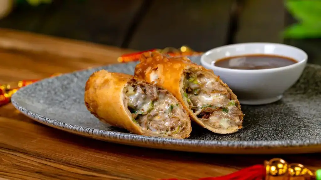- *Quesabirria Eggroll with guajillo pepper consomé
