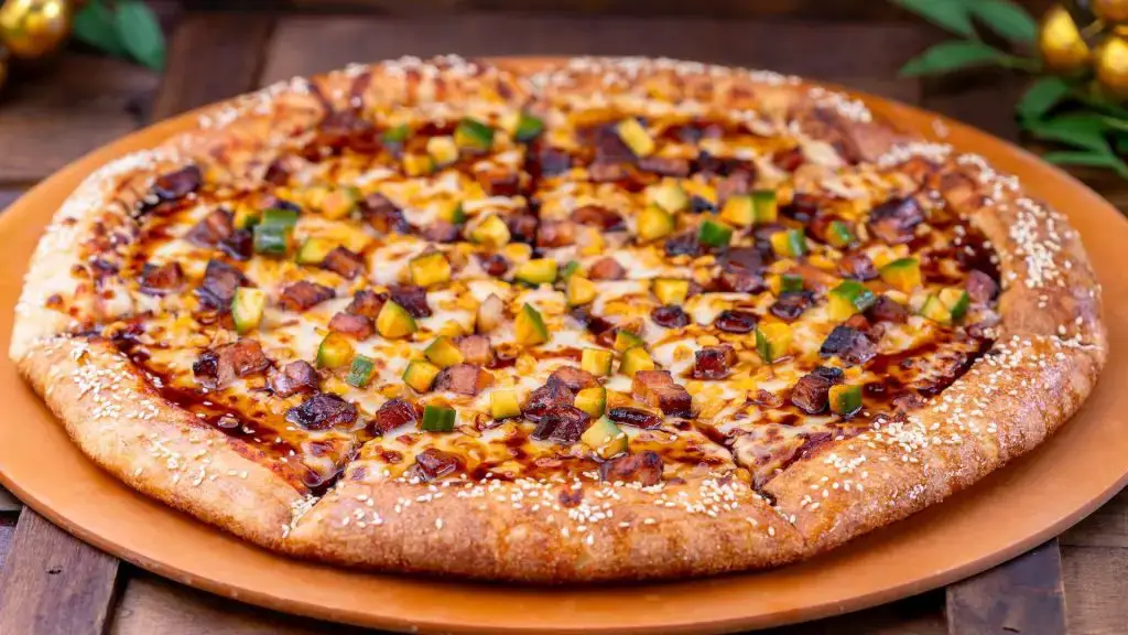 - Korean Pork Belly Pizza: Roasted soy-glazed pork belly with kimchi cucumber, mozzarella, yellow corn, sesame seeds, and kimchi marinara (Available Jan. 23 through Mar. 5)(Available by slice or whole pie)(New)