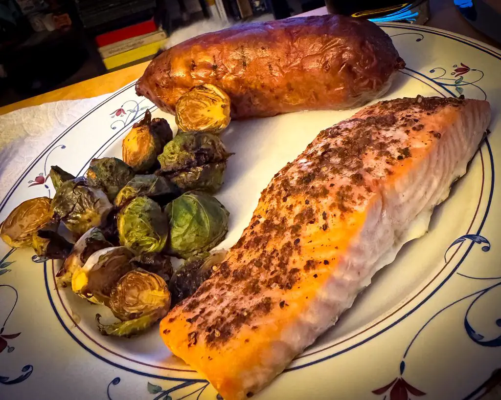 A favorite dish that comes out of my kitchen is Salmon, Murasaki Sweet Potatoes, & Vegetables. Yes, I know this is a bit vague with the vegetables, but that is because I often switch them up. Below, I will give the basics of what I do and how I most frequently switch things up. I learned how to cook the Murasaki Sweet Potatoes from my sister, and the rest I just played with until it became a favorite. I hope you enjoy it as well. With that, let’s head to the kitchen and get cooking!