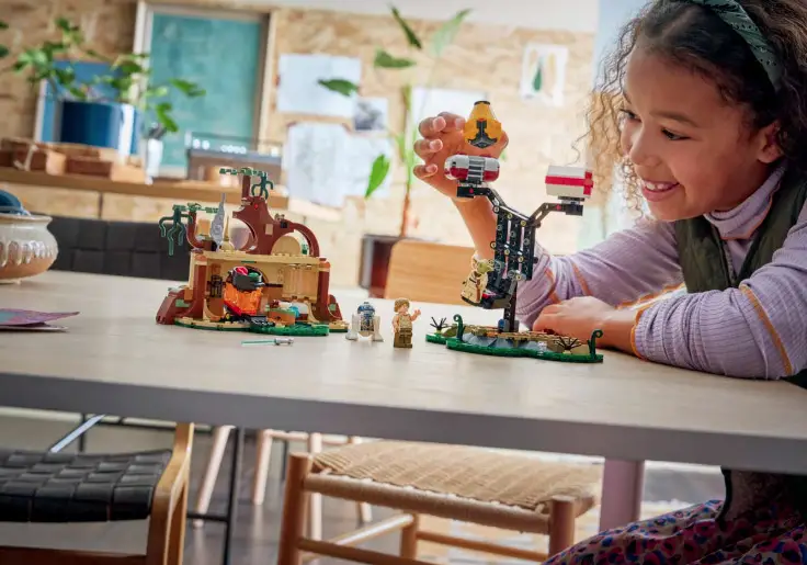 The build of Yoda’s™ Hut includes a removable roof, for easy access to unique play functions, featuring the included LEGO SMART Tags. Together with, the trusted droid companion R2-D2™, the two Jedi are able to engage in activities such balancing the Force, training sessions or even having a rest in a brick-built bed, once paired with a LEGO SMART Brick.