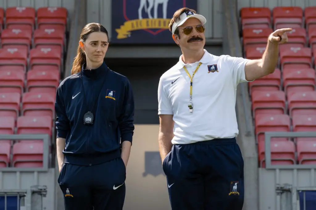 Ted stands on the side of the pitch with his new assistant coach, who is played by Tanya Reynolds. He will also have his trusted Coach Beard (Brendan Hunt) with him as well.