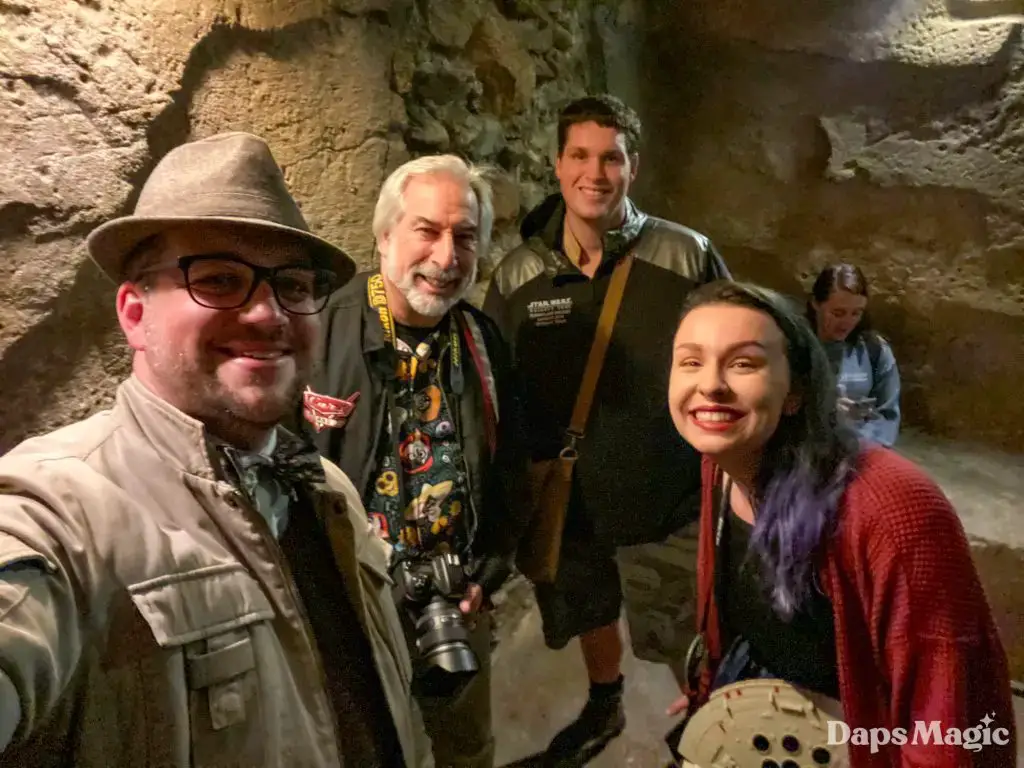 The Daps Magic team eventually made their way past the entrance gates of this brand-new attraction and into the tunnels. It opened our eyes as to what a new Star Wars attraction could be. While Millennium Falcon: Smugglers Run was an amped up Star Tours, this was something unlike anything we had experienced before, and it was incredible! From the moment BB-8, Rey, and Poe Dameron told us what was going to happen to the moment we found ourselves back on Batuu, there was no shortage of adventure! This attraction delivered completely on bringing guests into the Star Wars story, and it still does.