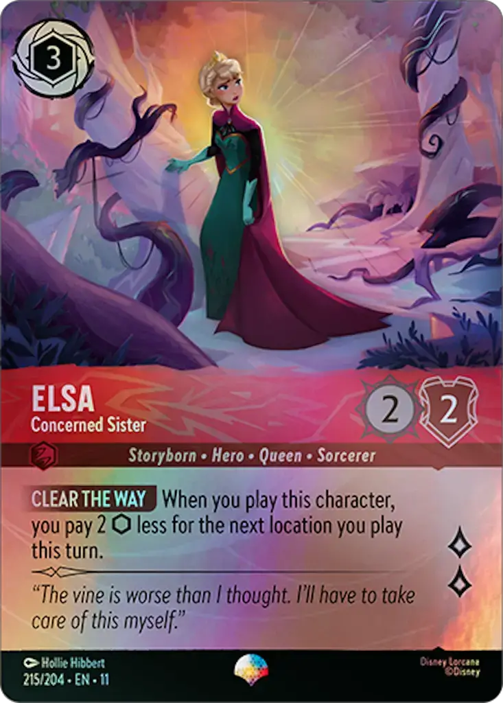 In Disney Lorcana TCG, glimmers of your favorite Disney characters can show up on cards at any time in their life, from both on-and-off screen storylines. I love seeing this look at Anna as a child, and a reminder of Elsa’s appearance at the beginning of Frozen, even though we have seen these characters grow and go on many epic journeys since.