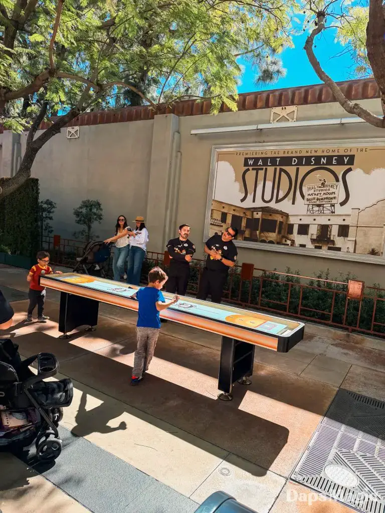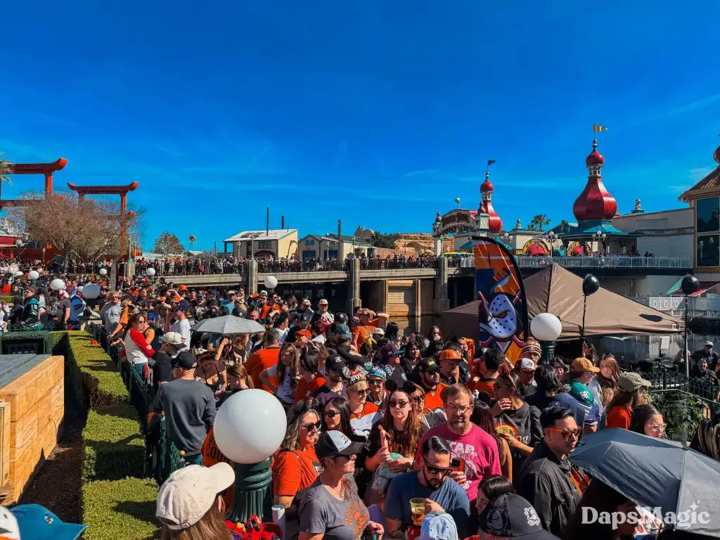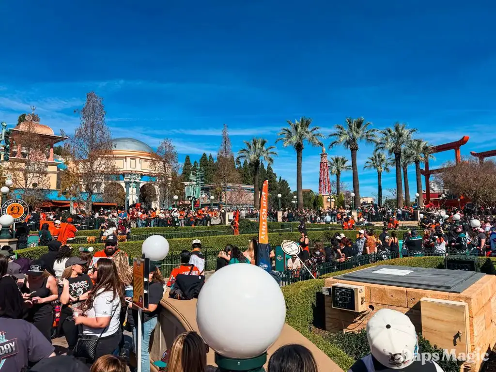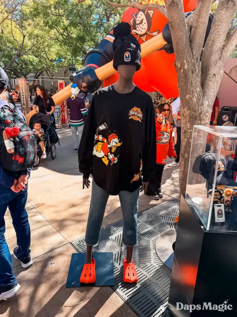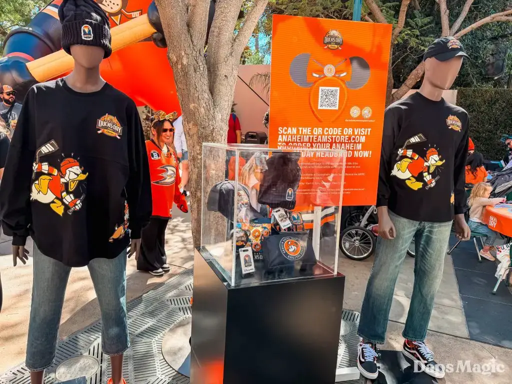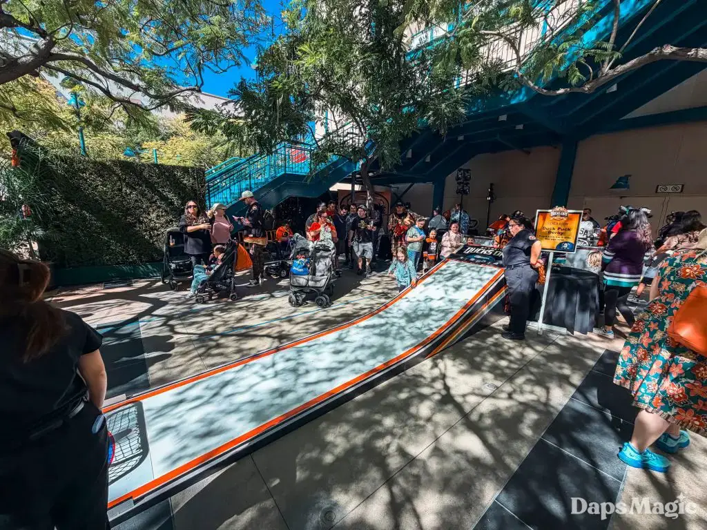 Before the park opened, hundreds of guests had already lined up in hopes of getting a coveted wristband that would allow them to get a photo with the Anaheim Ducks players. The wristbands disappeared very quickly once distribution began. Then the focus point became merchandise. The area in the queue of the Hyperion Theater became the “Locker Room” with games and activities, the merchandise, photo opportunities, and no shortage of energy. Throughout the day, the Ducks Power Players also made appearances. There was also an incredibly long line for the event merchandise, which progressively sold out throughout the day.