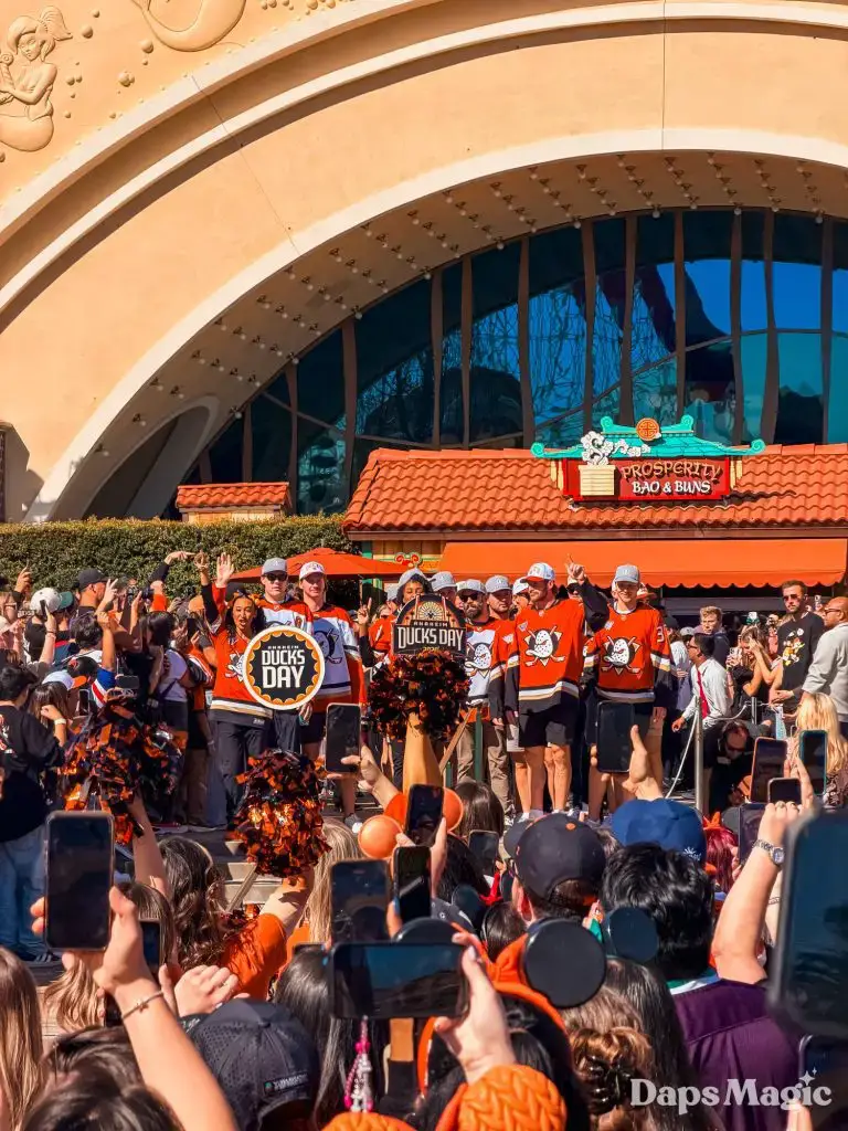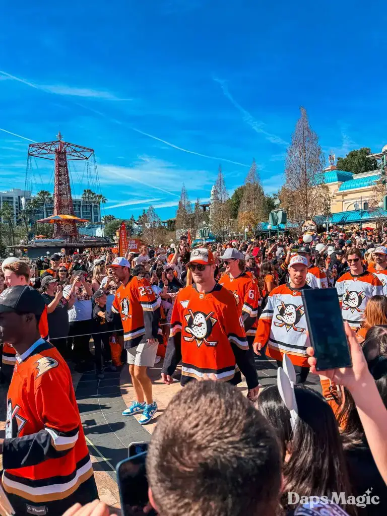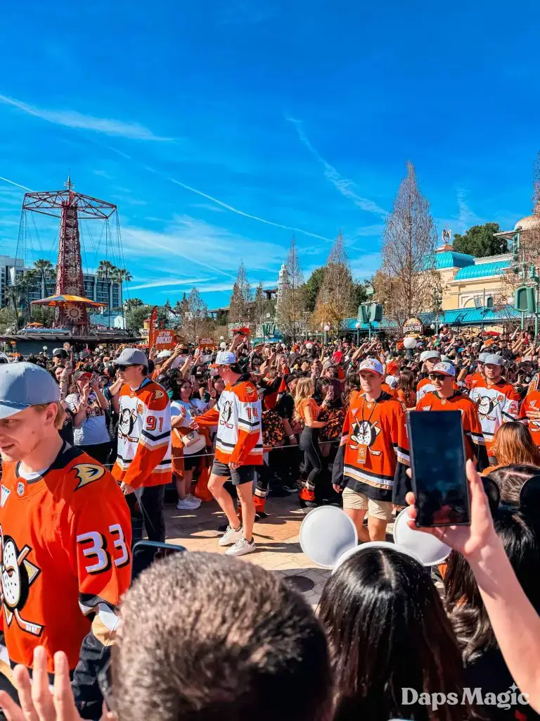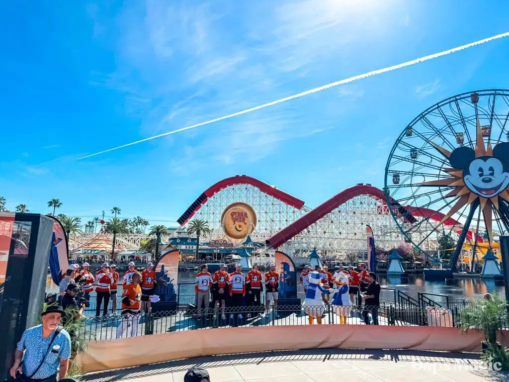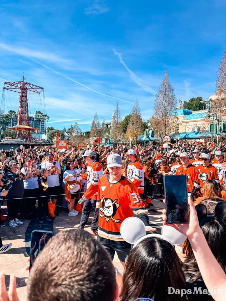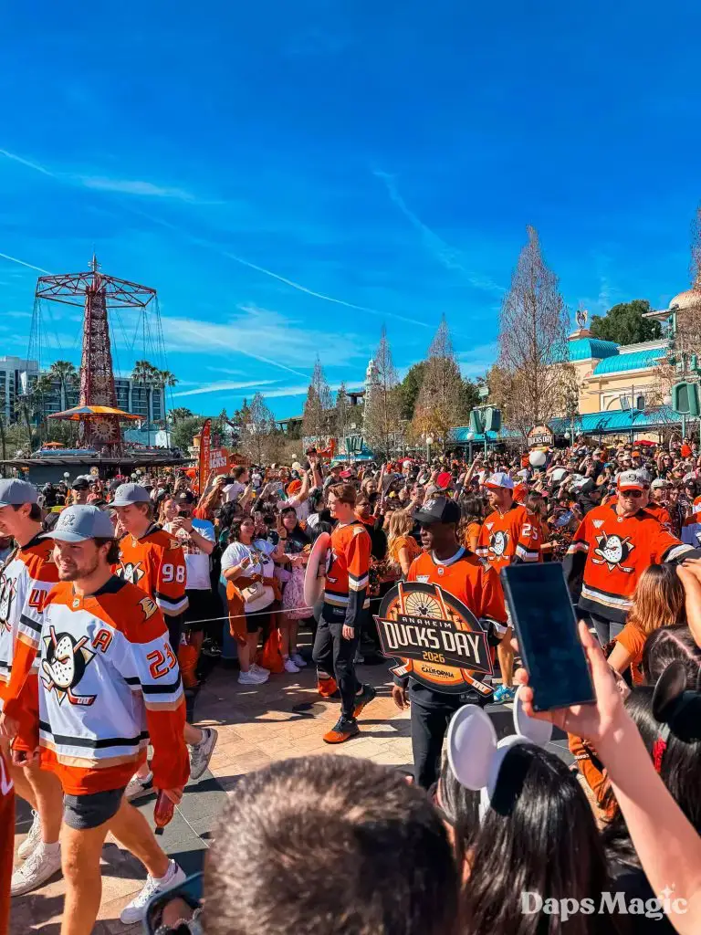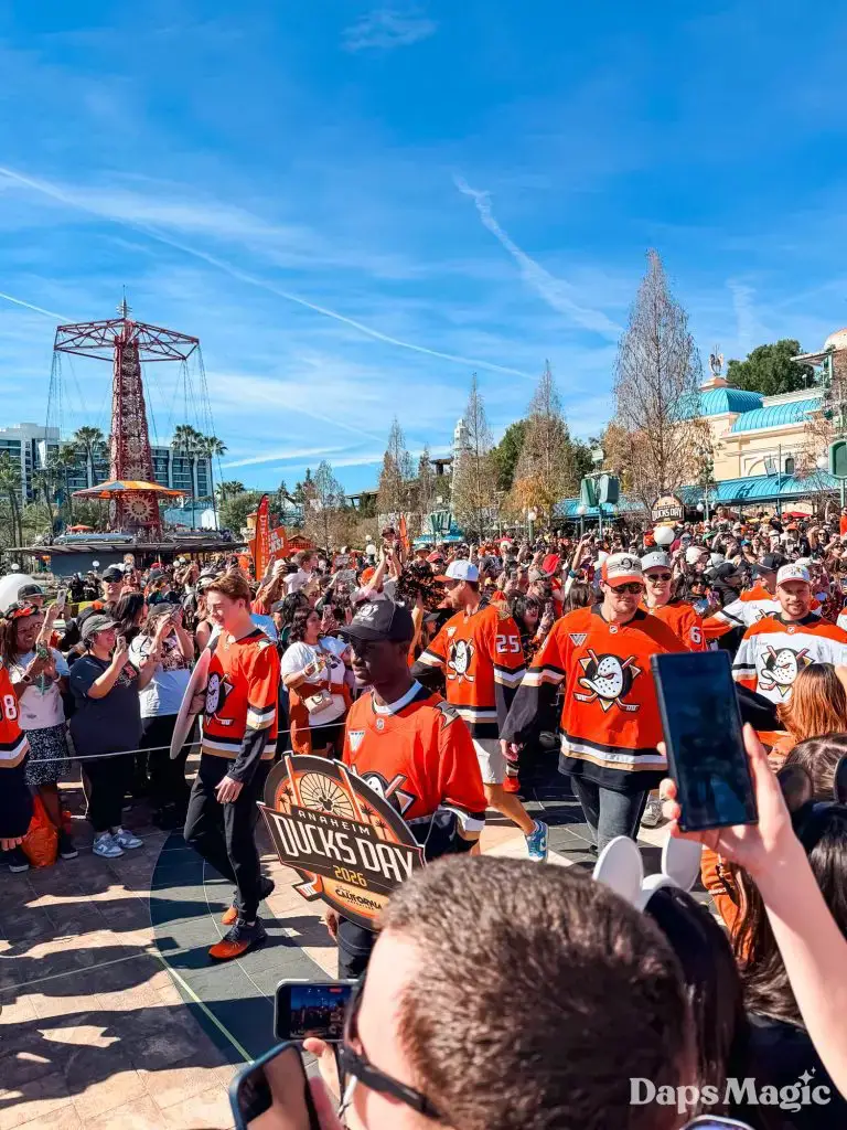 Anaheim Ducks Day returned to the Disneyland Resort on Sunday, February 22, 2026. Thousands of fans of the Anaheim Ducks flew to Disney California Adventure for a celebration of the local NHL team. The day included activities, merchandise, the opportunity to meet players for a photo, a chance to take a picture with Wild Wing, special treats, a rally, and a live podcast recording with DJ Jojo.