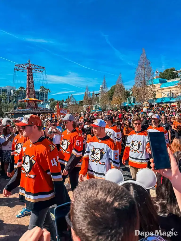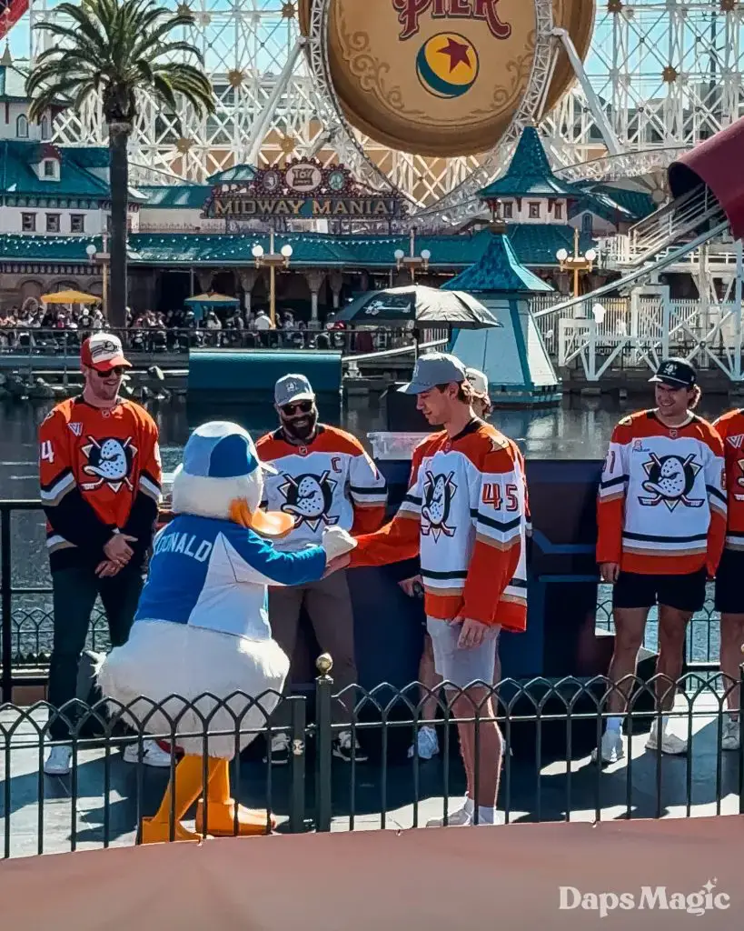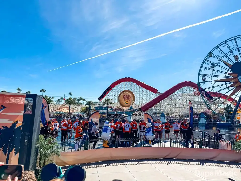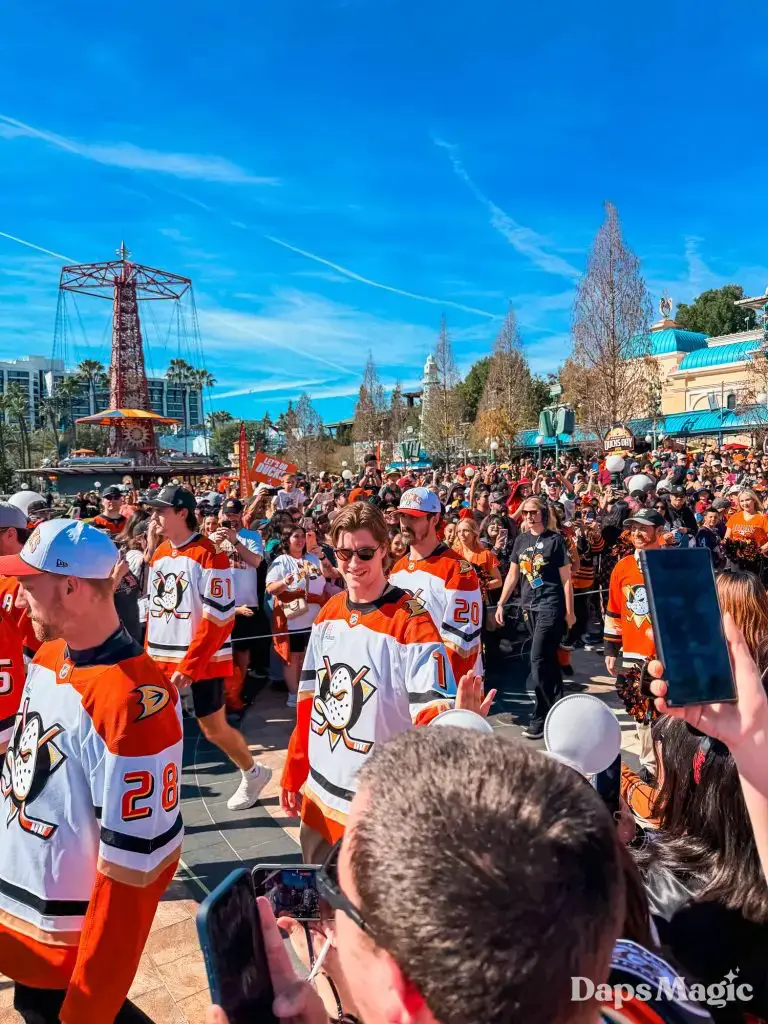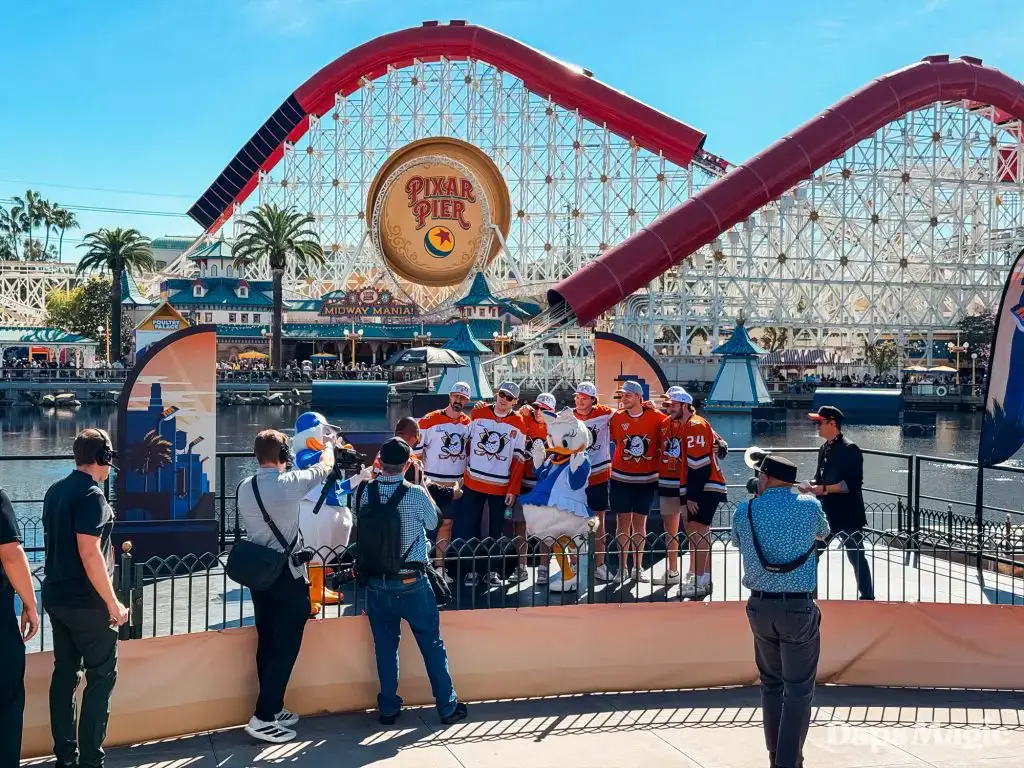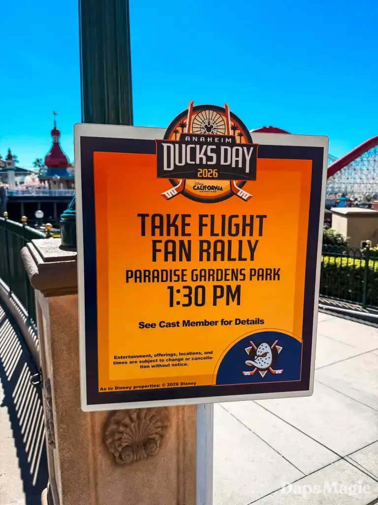 Anaheim Ducks Day returned to the Disneyland Resort on Sunday, February 22, 2026. Thousands of fans of the Anaheim Ducks flew to Disney California Adventure for a celebration of the local NHL team. The day included activities, merchandise, the opportunity to meet players for a photo, a chance to take a picture with Wild Wing, special treats, a rally, and a live podcast recording with DJ Jojo.