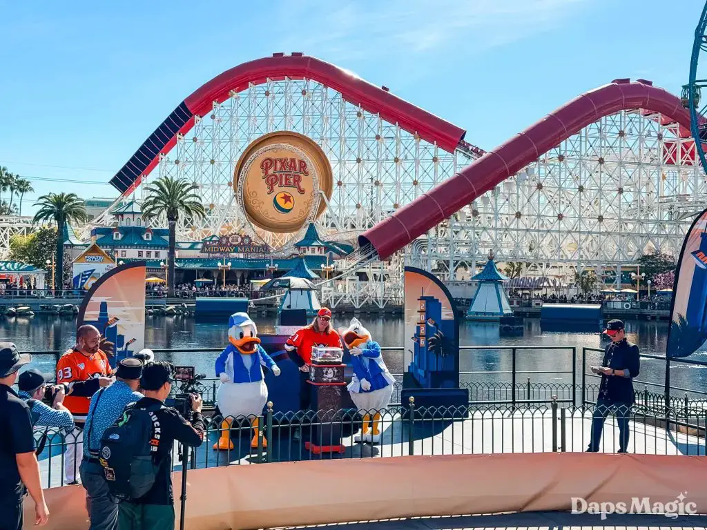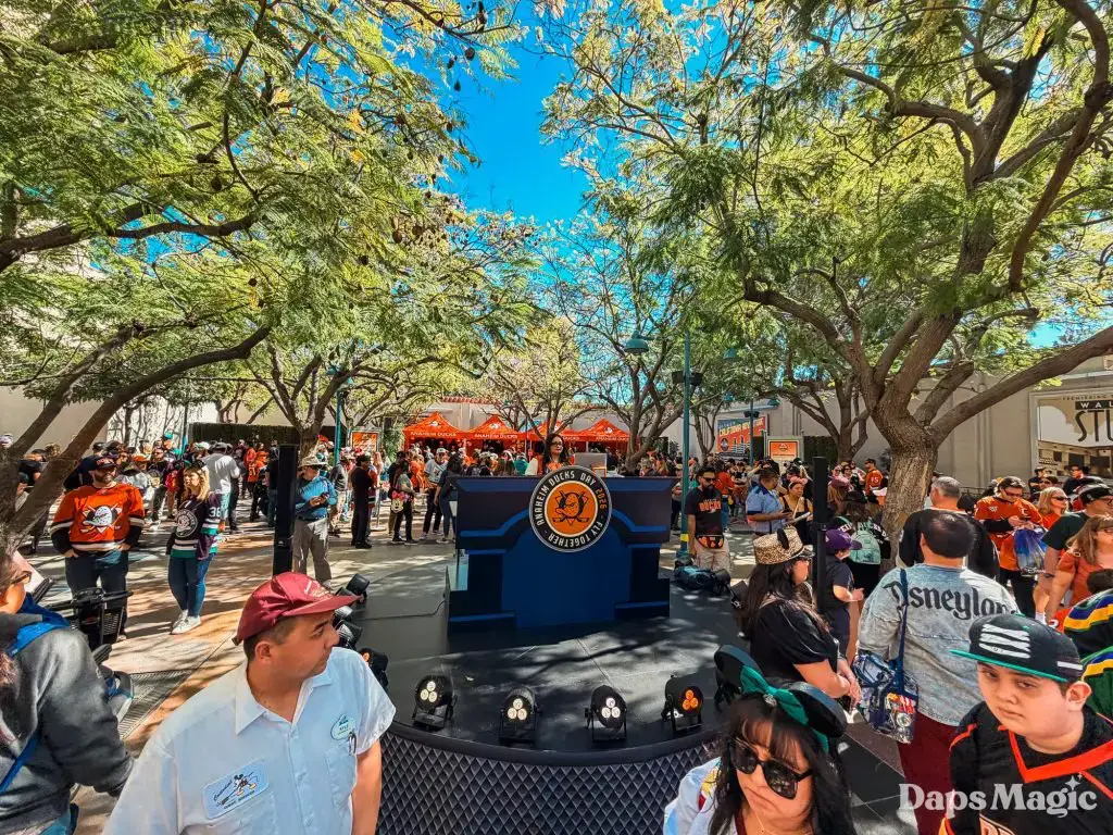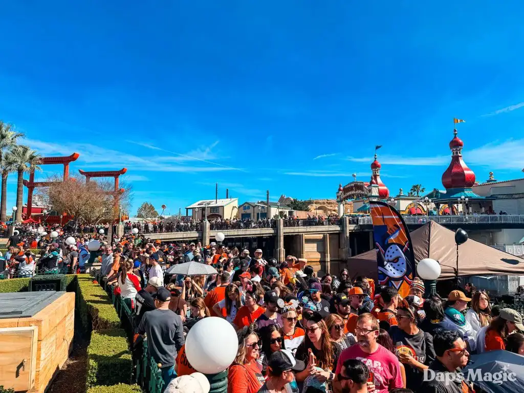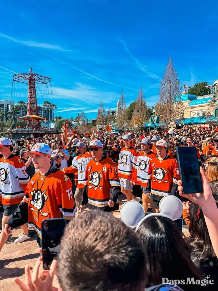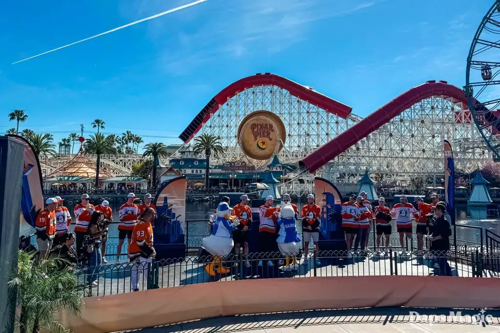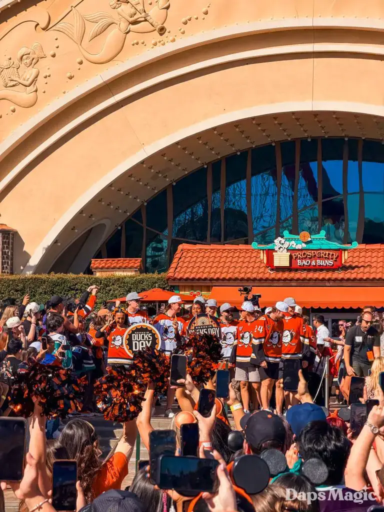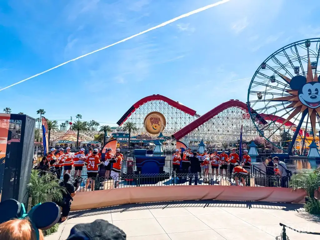 Anaheim Ducks Day returned to the Disneyland Resort on Sunday, February 22, 2026. Thousands of fans of the Anaheim Ducks flew to Disney California Adventure for a celebration of the local NHL team. The day included activities, merchandise, the opportunity to meet players for a photo, a chance to take a picture with Wild Wing, special treats, a rally, and a live podcast recording with DJ Jojo.