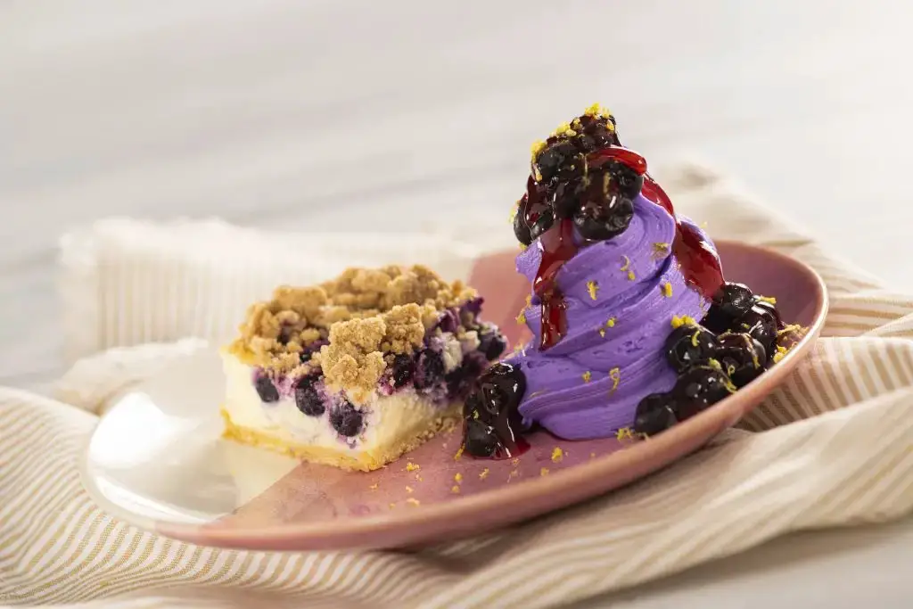 - Blueberry Crumble Cake with blueberry-lemon zest soft-serve and blueberry compote