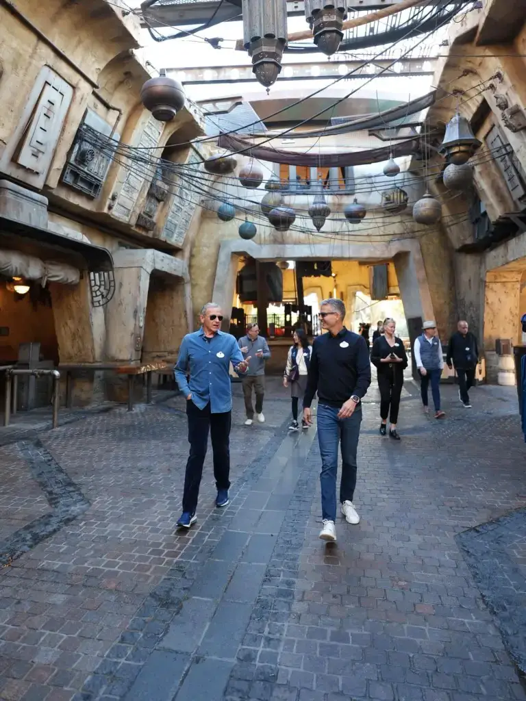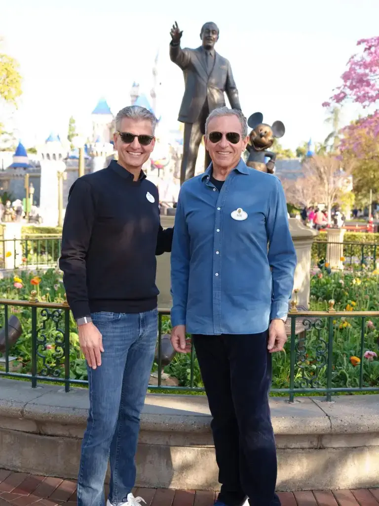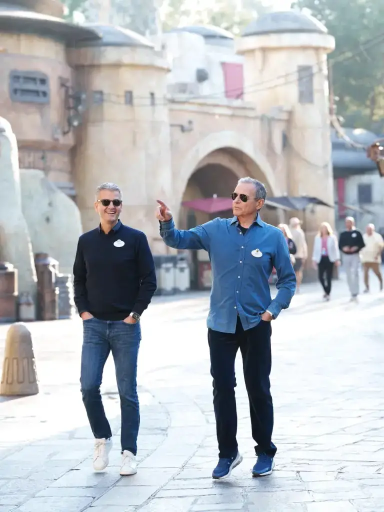 Throughout the day, the duo could be seen chatting with cast members and posing for pictures with guests. While also being a celebratory moment for the two leaders, this also shows a united front during the transition from one CEO to the next.