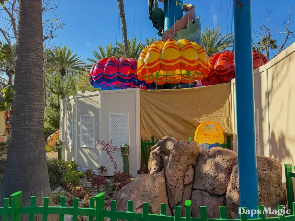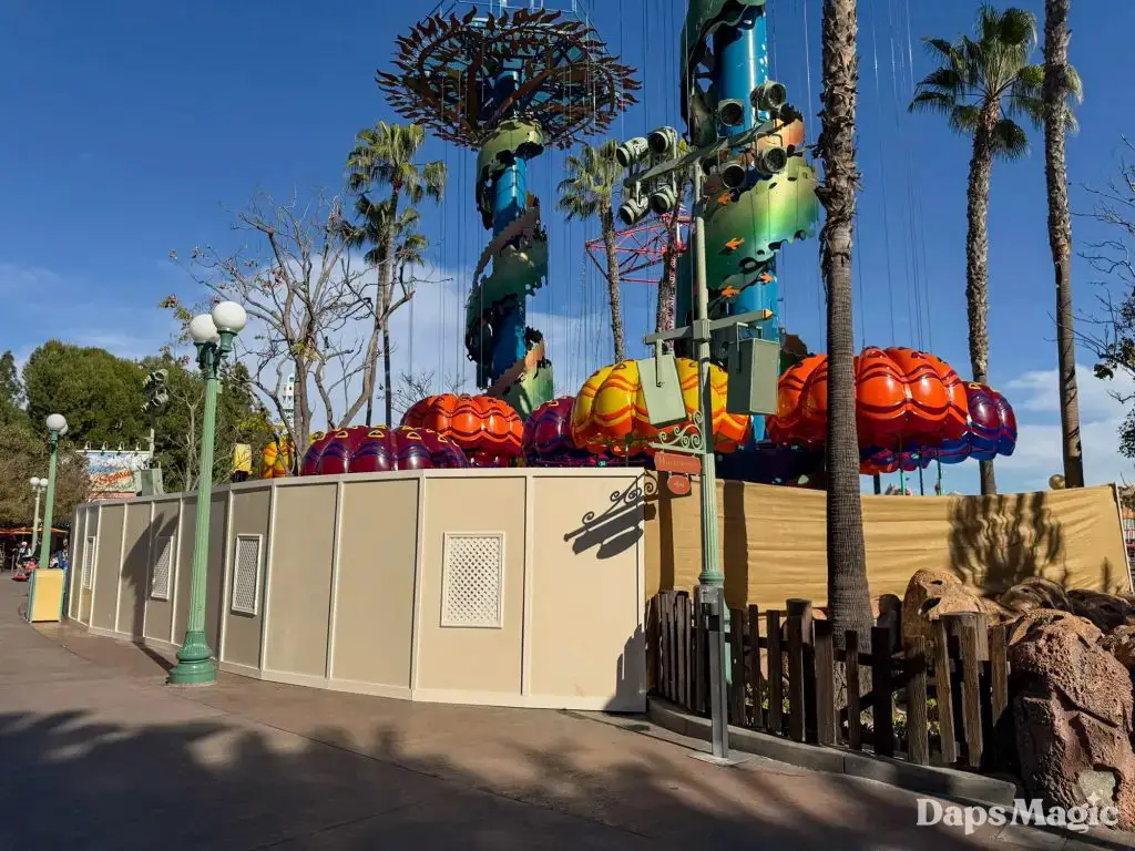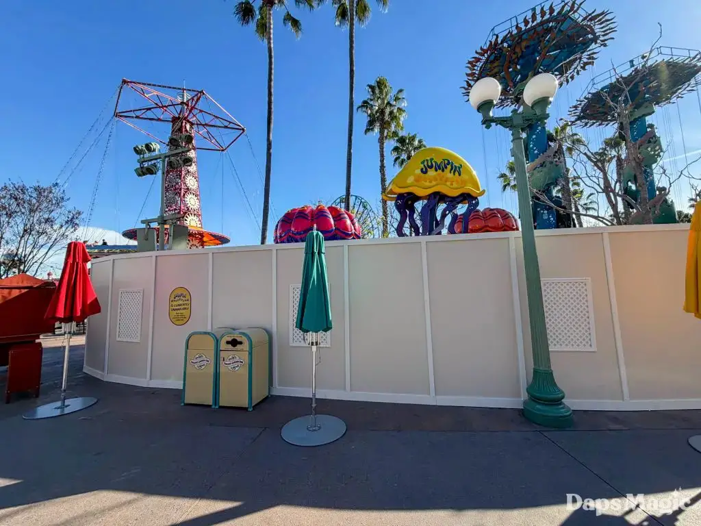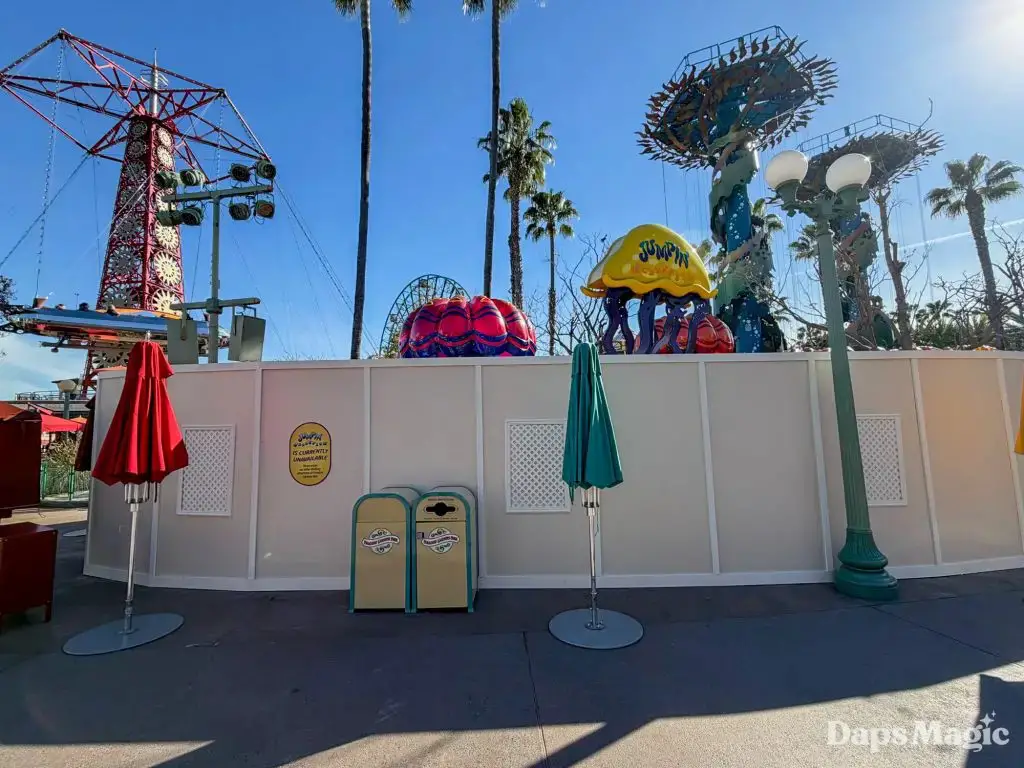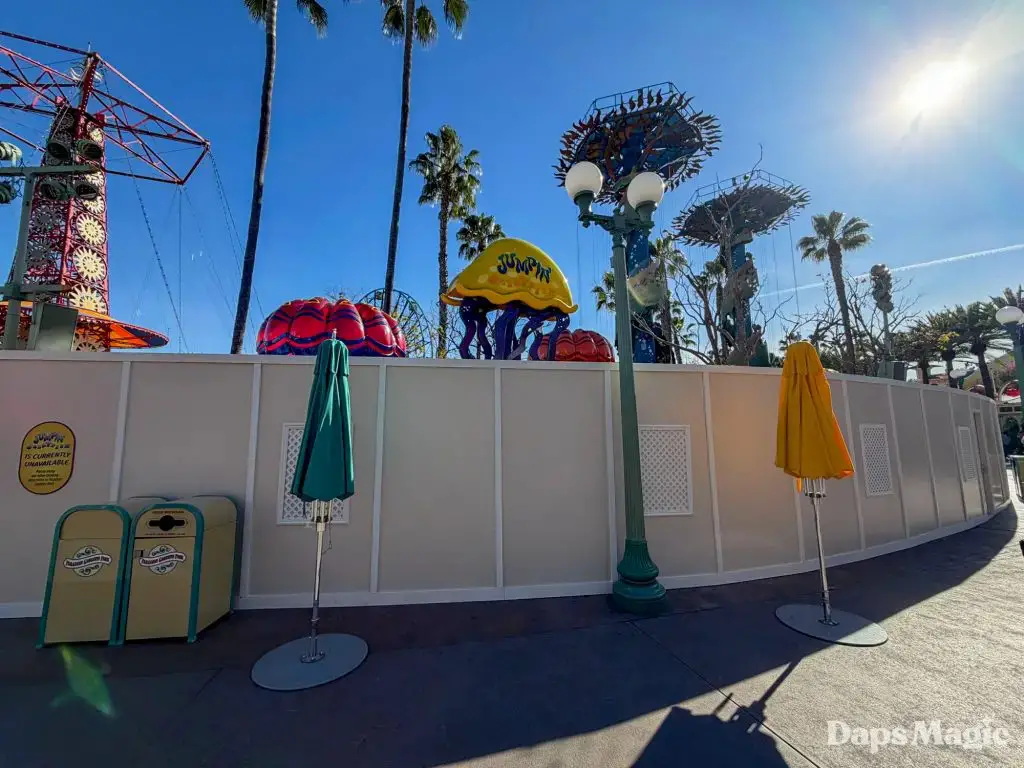 A frequent thing that is heard in the Southwest corner of Disney California Adventure is a cast member saying, “jump, jump, jelly!” as they send guests up and down on Jumpin’ Jellyfish. Guests visiting the park this week will not be hearing this. The kid-friendly attraction at the Disneyland Resort is temporarily closed for a brief refurbishment. According to the Disneyland Resort, the attraction is set to reopen on March 6, 2026.