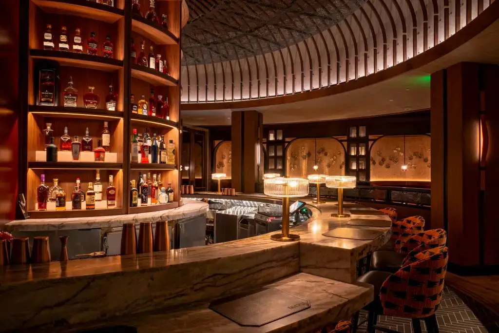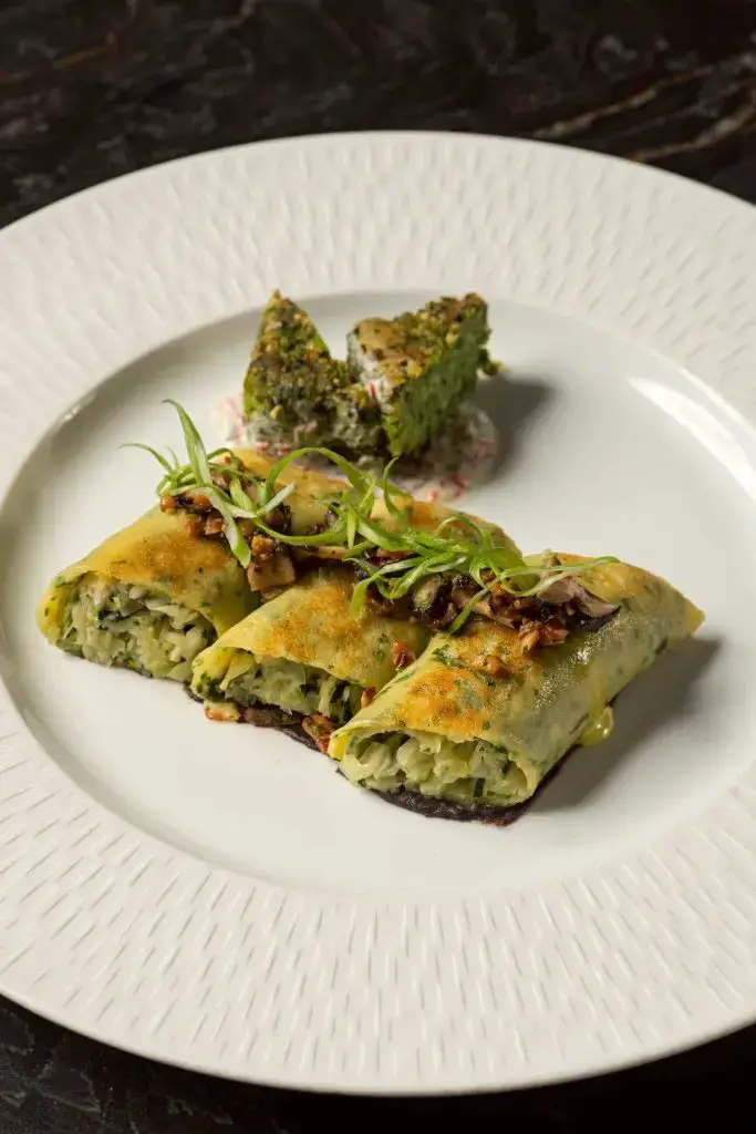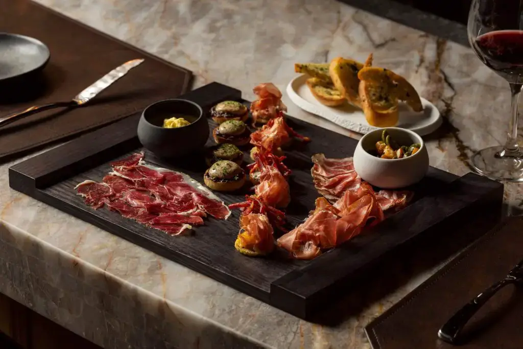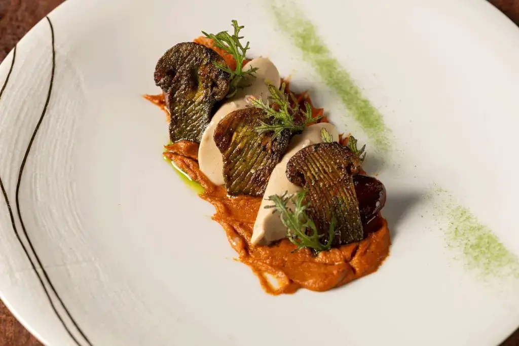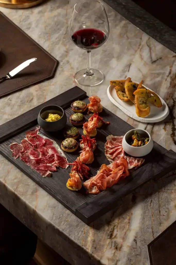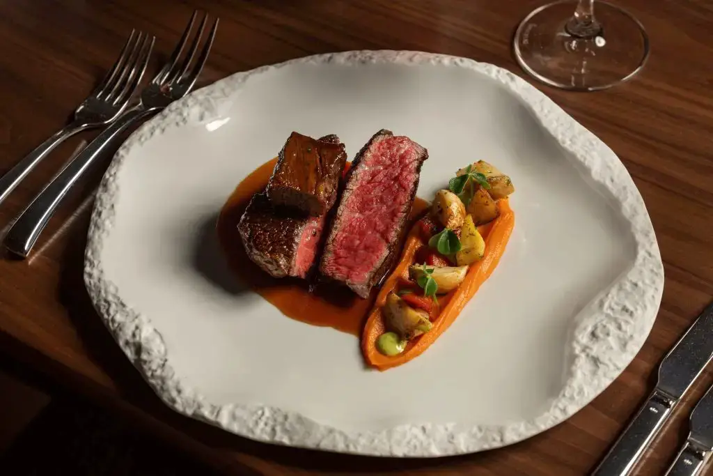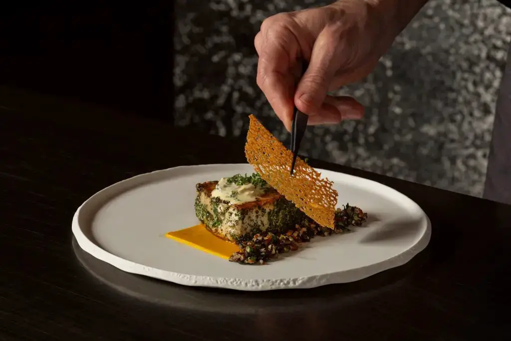 At the bar, guests can enjoy pepita-crusted zucchini blossoms and Berkel-sliced charcuterie or choose to elevate their dining experience with Osetra golden caviar. The cocktail program at the restaurant features beverages made with house-made juices and tinctures. This includes the “East of Furnace Creek,” featuring a butterfly pea flower cordial and Meyer Lemon tincture. Other classic beverages will also be available, like the Sequoia Skyline, a twist on the classic Manhattan. This adds spiciness and herbaceous notes with a pink peppercorn-infused dry sherry, infused with Redwood smoke.