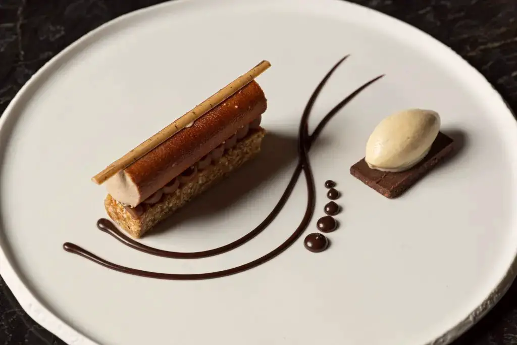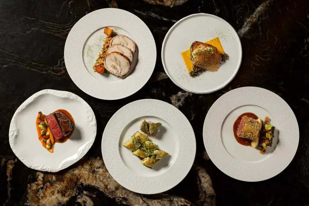 The main dining room will offer a four-course tasting menu that is presented as a cohesive experience. This will allow guests to select from multiple options for each course. The bar and lounge will offer a separate à la carte menu with small plates alongside indulgent offerings, including caviar service, seafood preparations, and charcuterie. All of these offerings are designed to pair with the wine and cocktail programs. There will also be select tableside preparations and the chef’s counter to offer a closer look at the care and craft that is put into each dish.