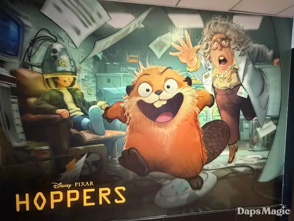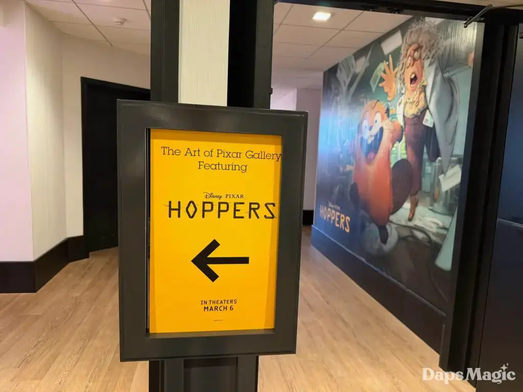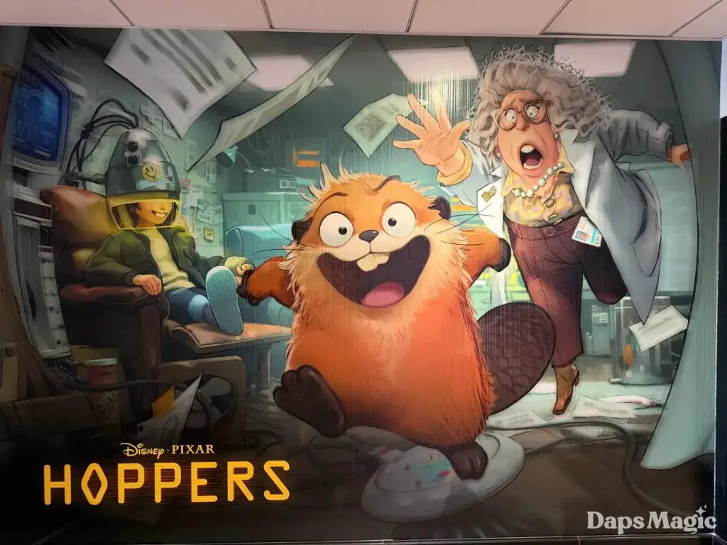 A new exhibit has appeared on the second floor of the Pixar Place Hotel. This time, the exhibit is for Pixar Animation Studios’ new movie, Hoppers. The film arrives in theaters on March 6, 2026. The exhibit follows a trend for the space of highlighting different Pixar projects at the third hotel at the Disneyland Resort.