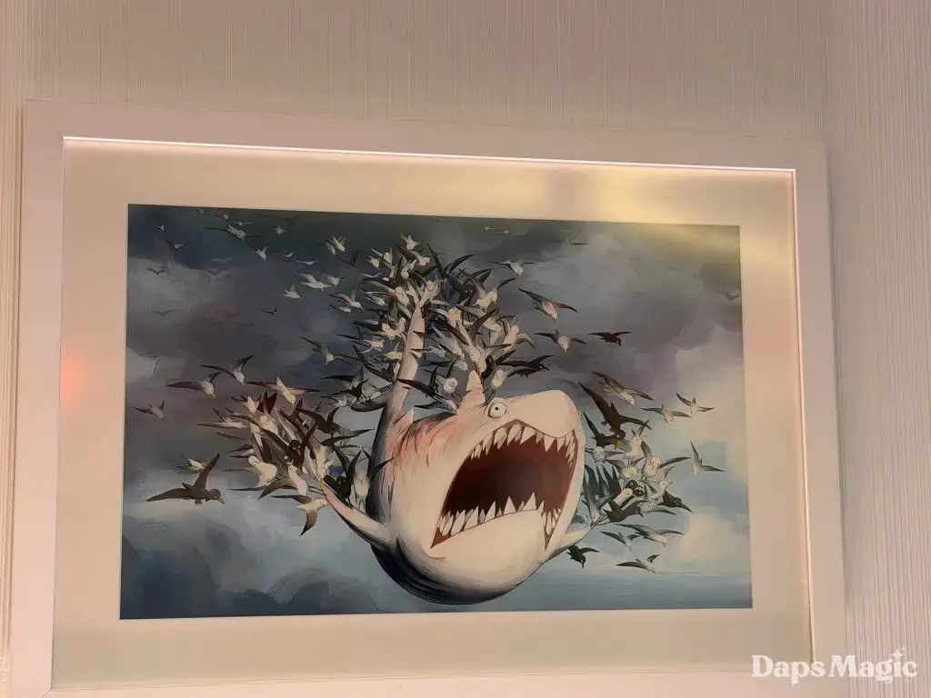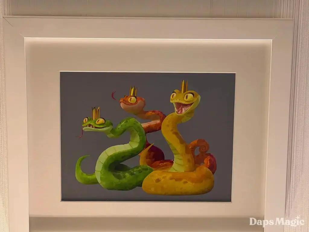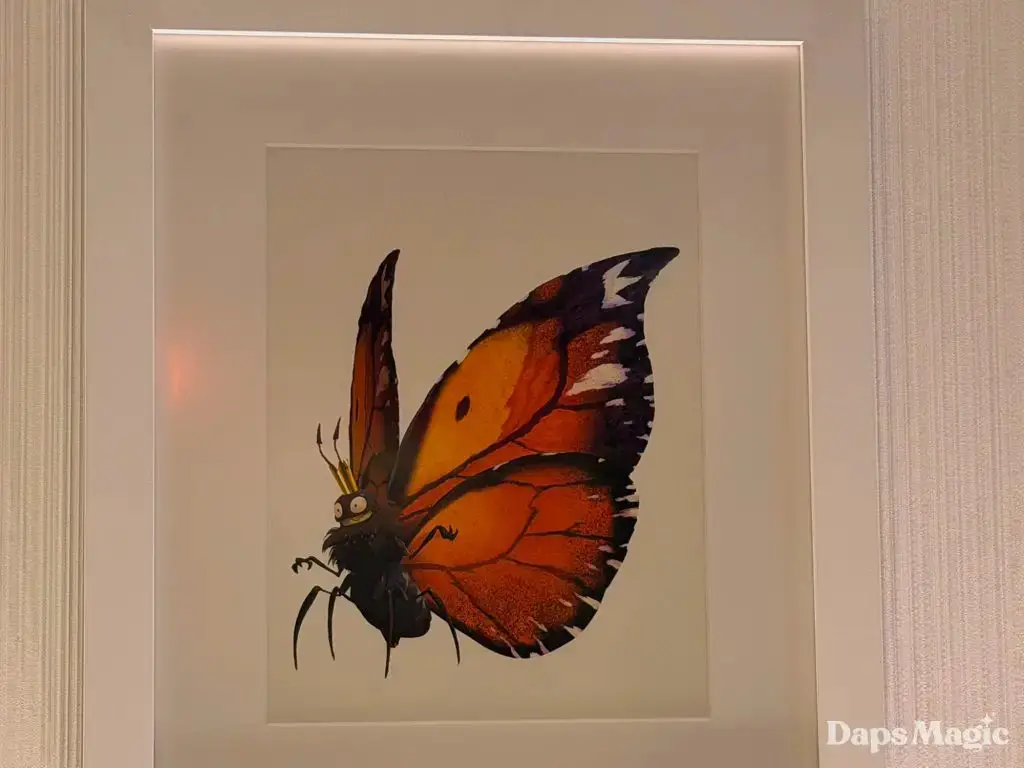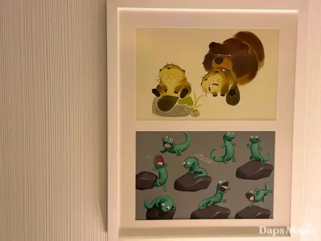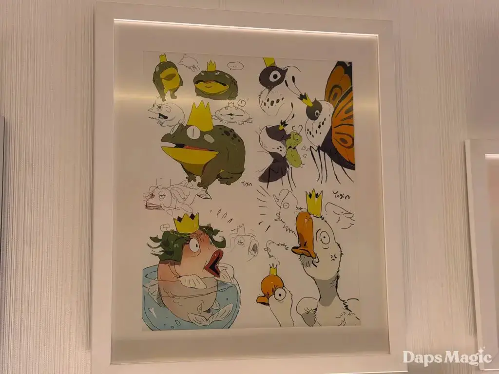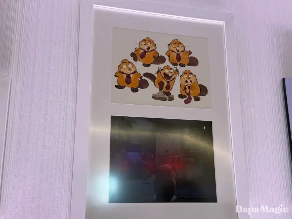 Daps Magic team member Steven stopped by the hotel over the weekend and took the following photos of this exhibit. It shows different images from the upcoming film that range from sketches to fully rendered artwork. Check them out here: