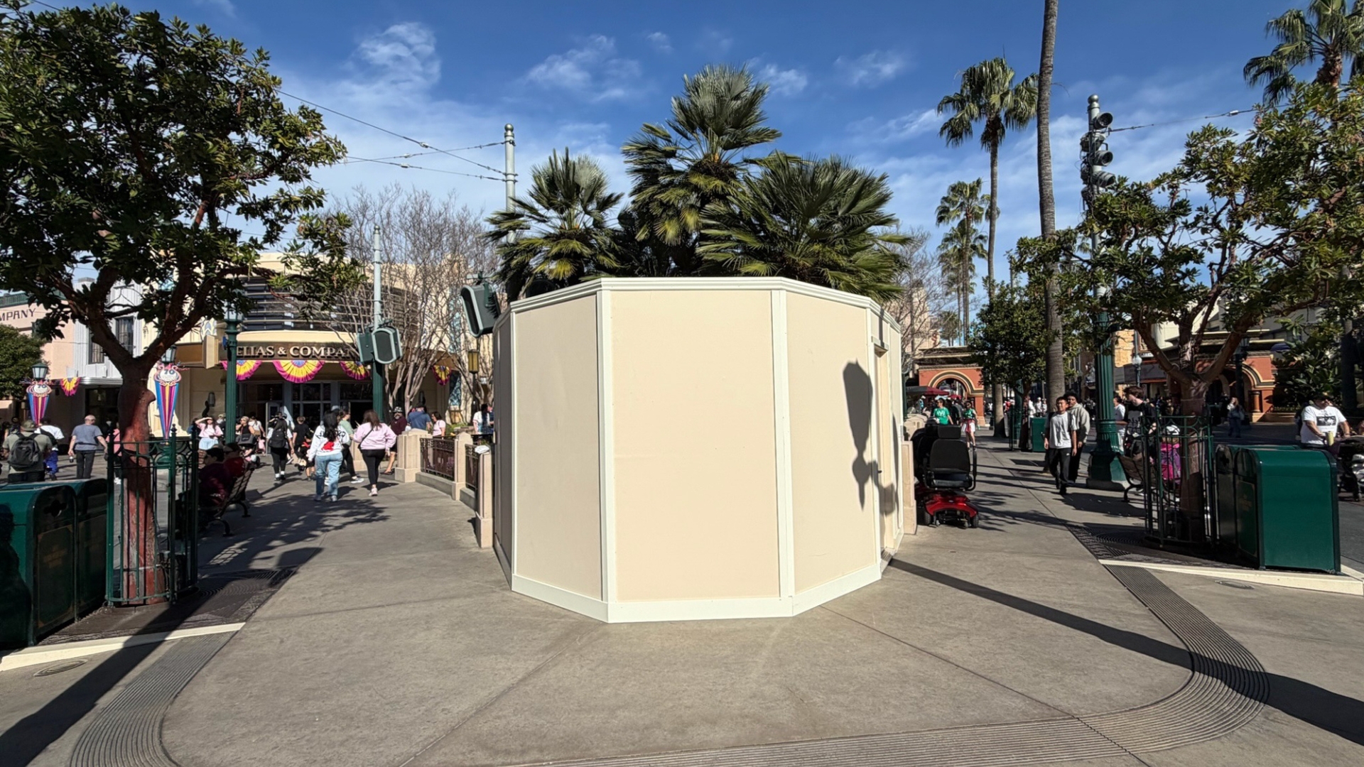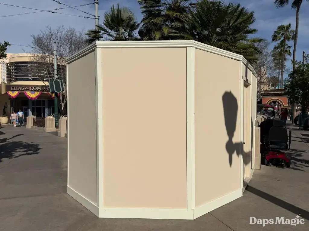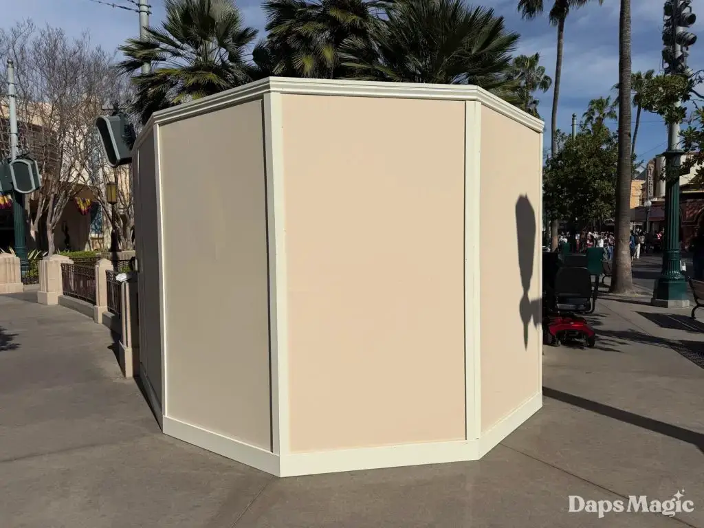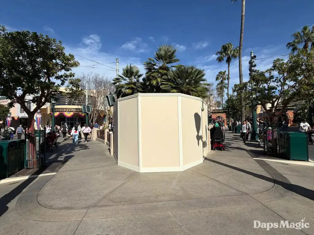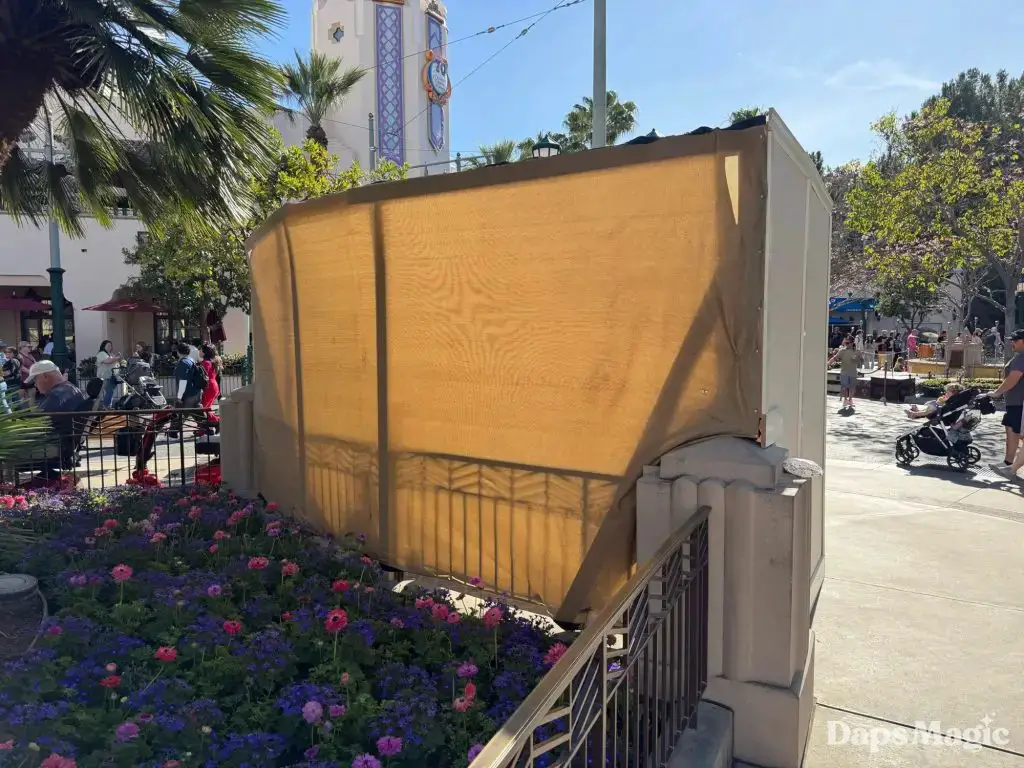 On Monday, February 23, 2026, as guests made their way into Disney California Adventure, they discovered that the Storytellers statue had been put behind walls. The walls that surround the statue are usually indicators of construction or refurbishment. Daps Magic team member Steven took the following photos of how this corner of Disney California Adventure now looks with the walls up around Walt and Mickey.