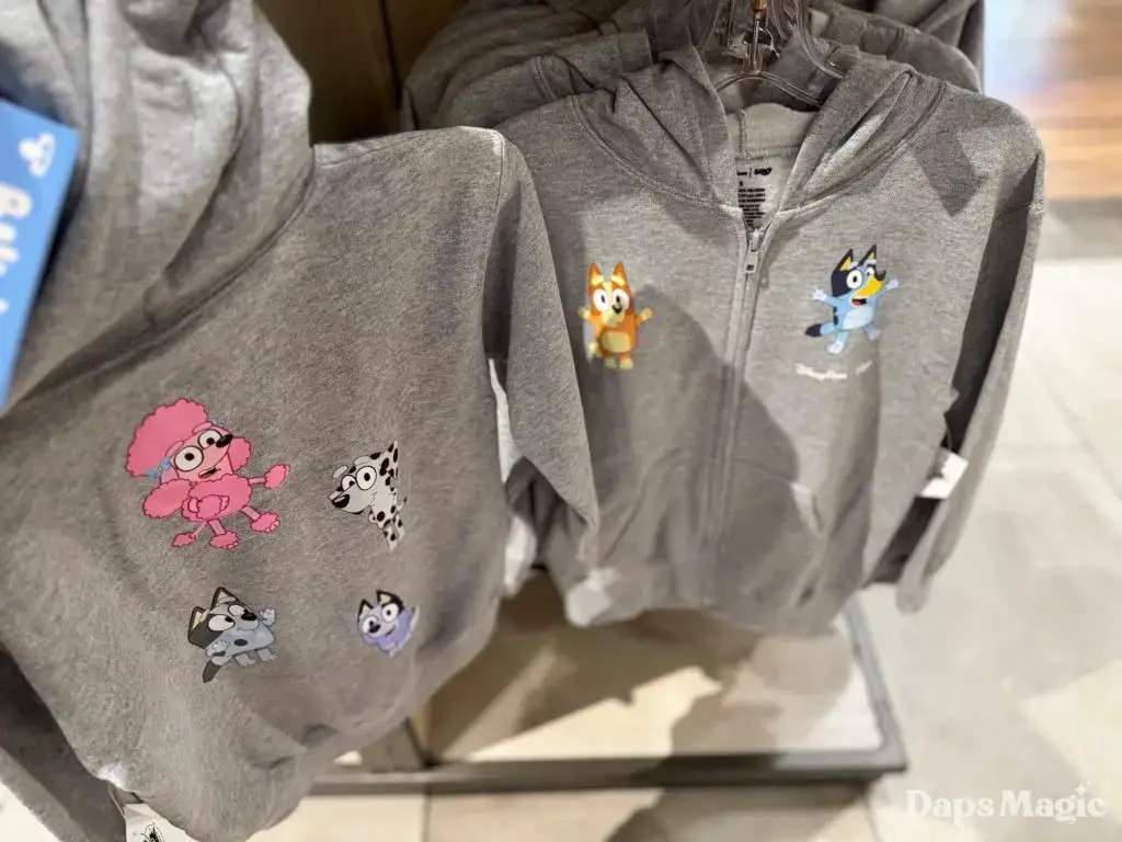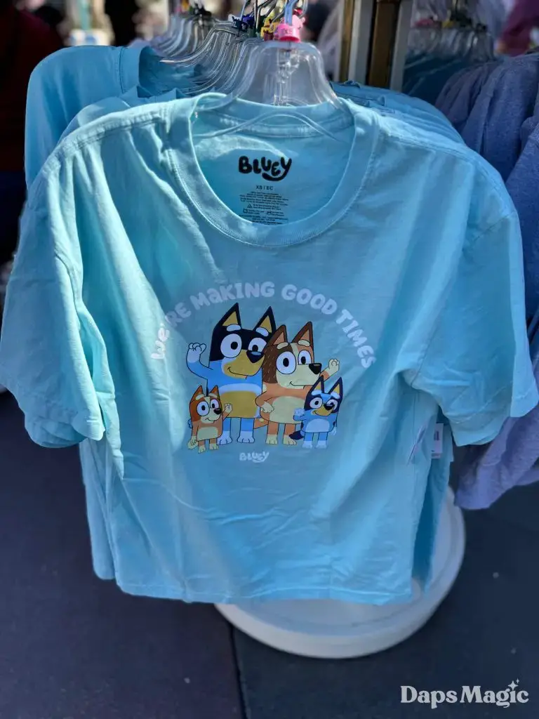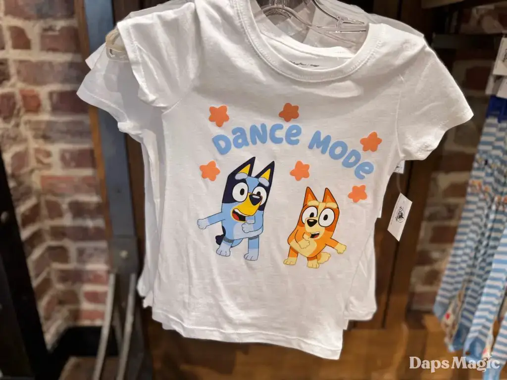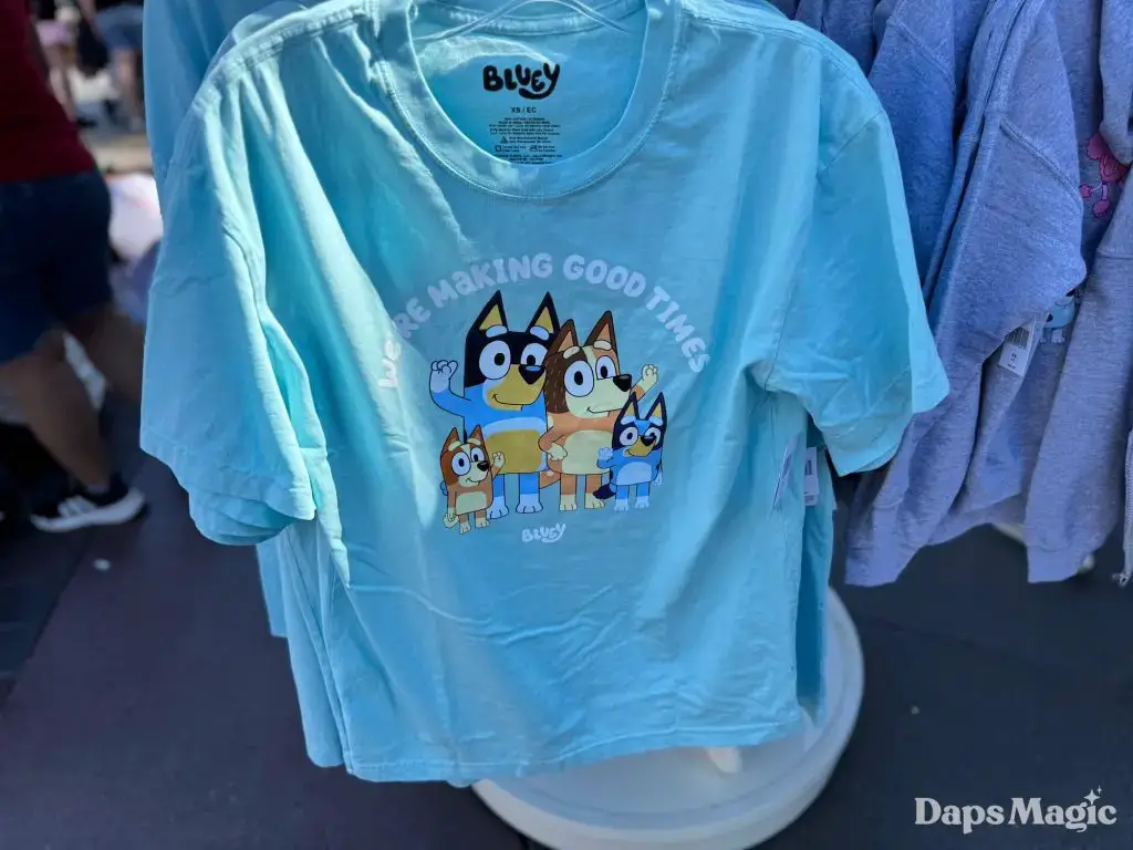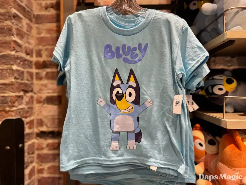 Friend of Daps Magic, Spencer, stopped by the Disneyland Resort and checked out the Bluey merchandise that is currently available at World of Disney in Downtown Disney District and Elias & Co. at Disney California Adventure. When he stopped by the store on Friday, he found the following merchandise. It should be noted that there weren’t adult sizes for shirts when he visited the listed locations. They were found, however, near it’s a small world at Disneyland.