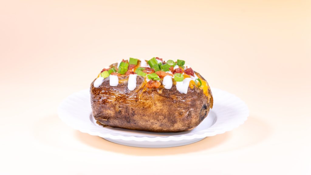 - Pizza Girls Baked Potato: Pepperoni, sausage, bacon bits, marinara, mozzarella, alfredo sauce, and parmesan herb topper (New)