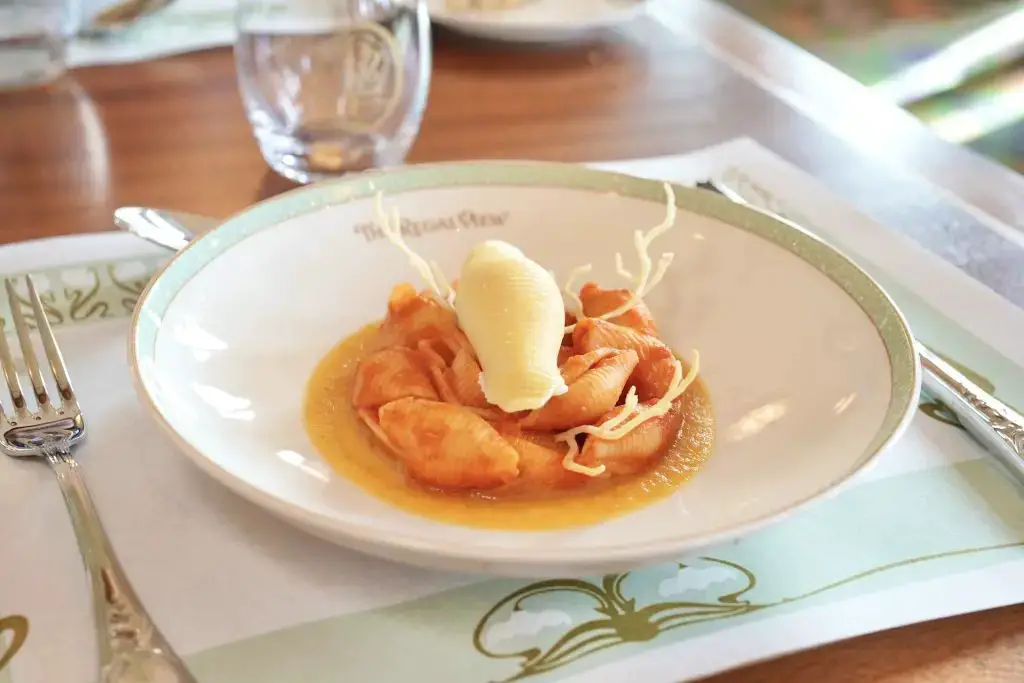 - Conchiglie Pasta with ricotta cheese and red and yellow tomato sauce (Kids menu)