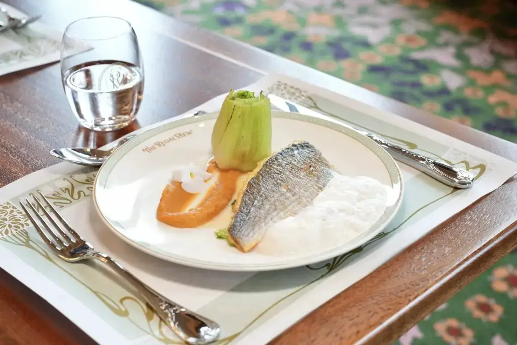 - Gilthead Seabream: Kaffir lime and vanilla sauce, sweet potato purée, and braised bok choy
