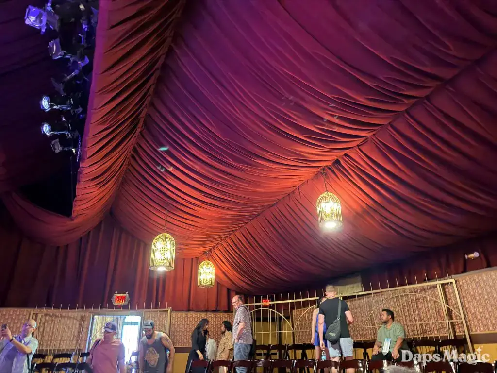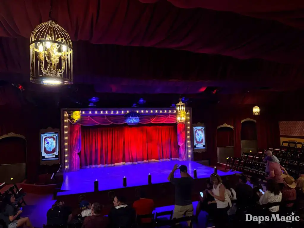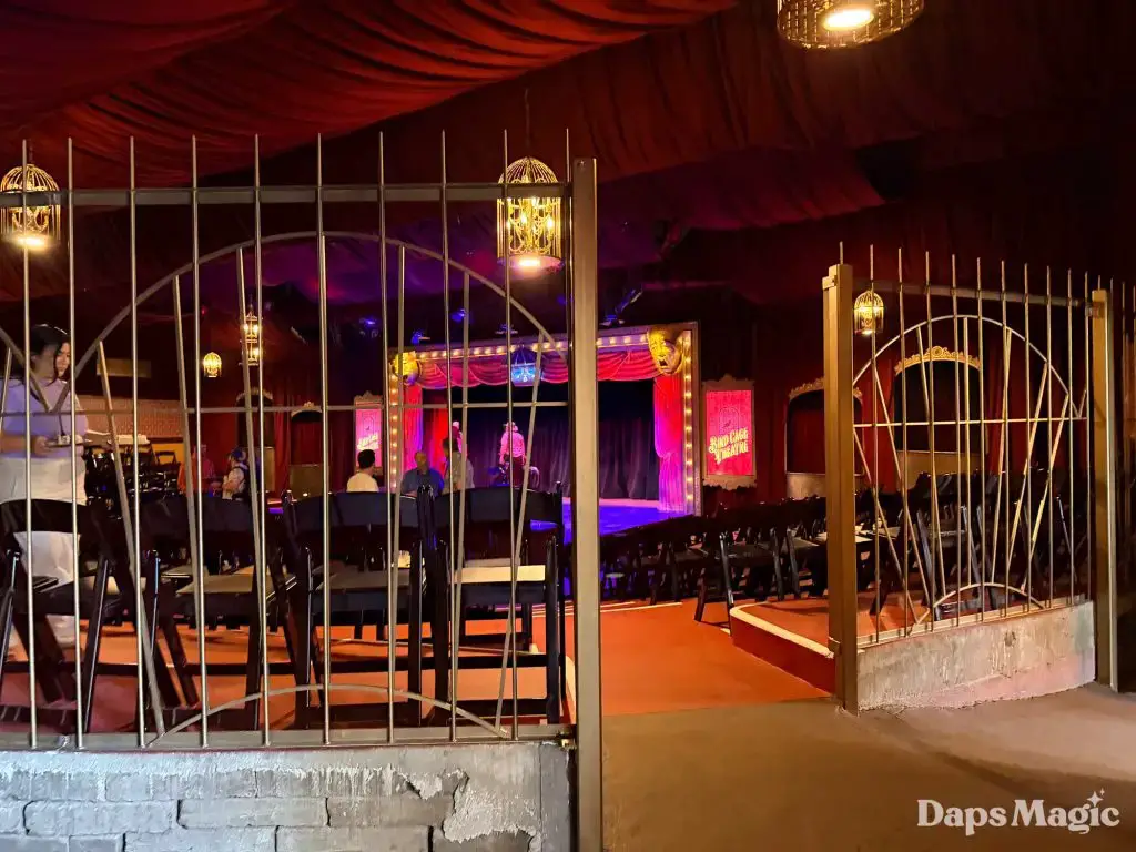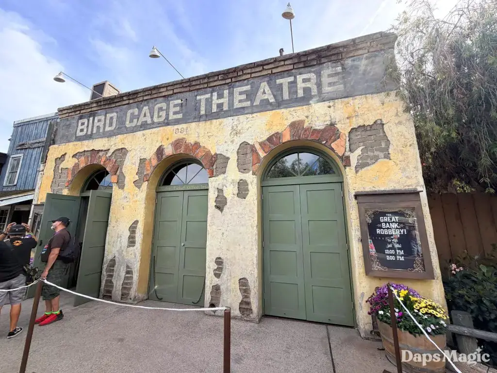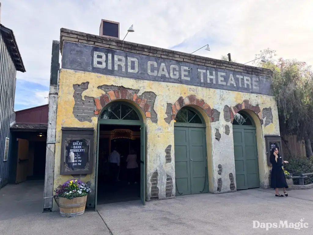 On Friday, March 13, 2026, Knott’s Berry Farm celebrated the reopening of the historic Bird Cage Theatre. The 72-year-old theatre had undergone a substantial renovation that made it look better than ever. Throughout the theatre, the theme of the bird cage could be seen. This ranged from new gates in the corners that were reminiscent of a bird cage, light fixtures hanging from the ceiling, and even the recreation of wallpaper from days gone by. The theatre also saw technological upgrades that included sound treatment, environmental treatments, and even new lighting!