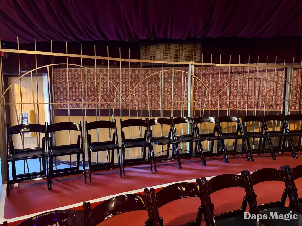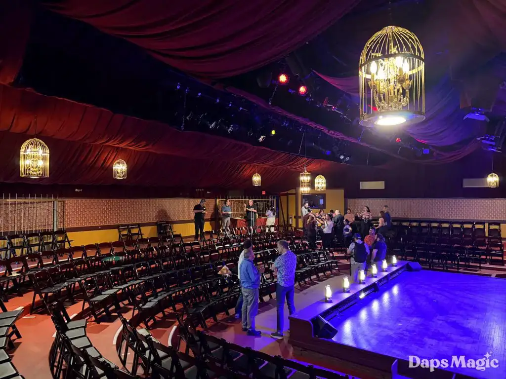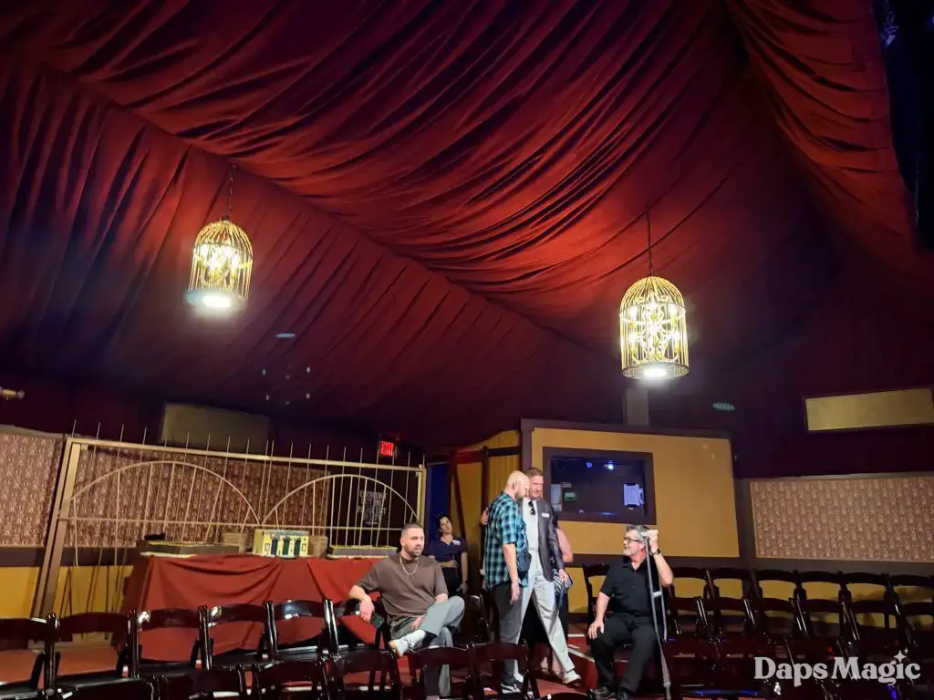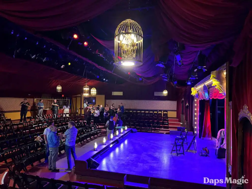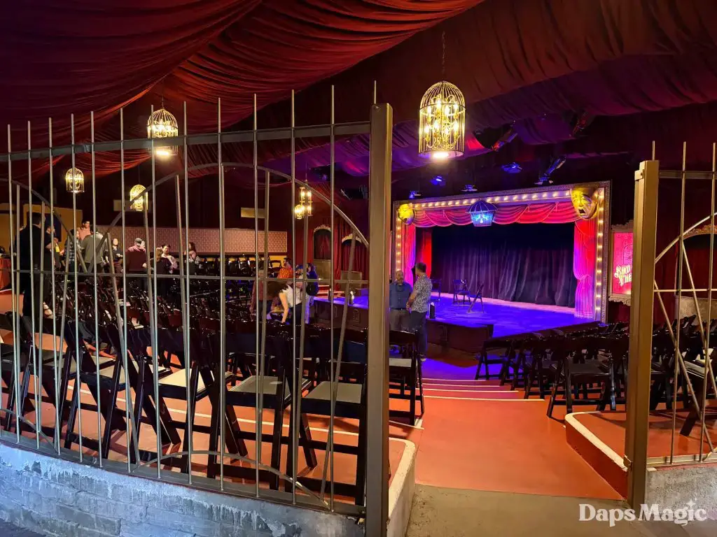 On Friday, March 13, 2026, Knott’s Berry Farm celebrated the reopening of the historic Bird Cage Theatre. The 72-year-old theatre had undergone a substantial renovation that made it look better than ever. Throughout the theatre, the theme of the bird cage could be seen. This ranged from new gates in the corners that were reminiscent of a bird cage, light fixtures hanging from the ceiling, and even the recreation of wallpaper from days gone by. The theatre also saw technological upgrades that included sound treatment, environmental treatments, and even new lighting!