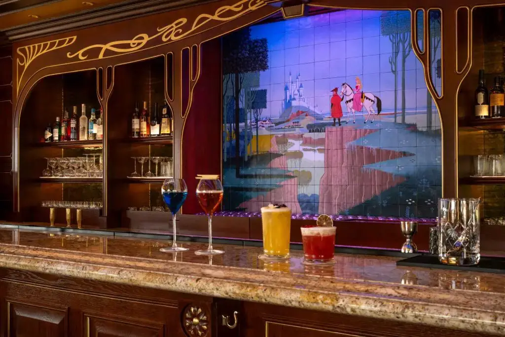 Over on the lounge side, you’ll find the very first lounge located at either of the two Disneyland Paris parks. Unwind with signature cocktails and enjoy the breathtaking views of Adventure Bay and World of Frozen.
