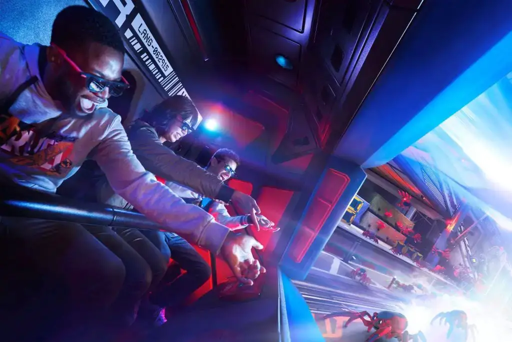 Spider-Man W.E.B. Adventure – Jump into the action as you take on Peter Parker’s runaway Spider-Bots in a fast-paced mission that puts your skills to the test. Climb into a W.E.B. SLINGER Vehicle and sling webs right alongside Spider-Man to stop the bots before they unleash full blown techno havoc.