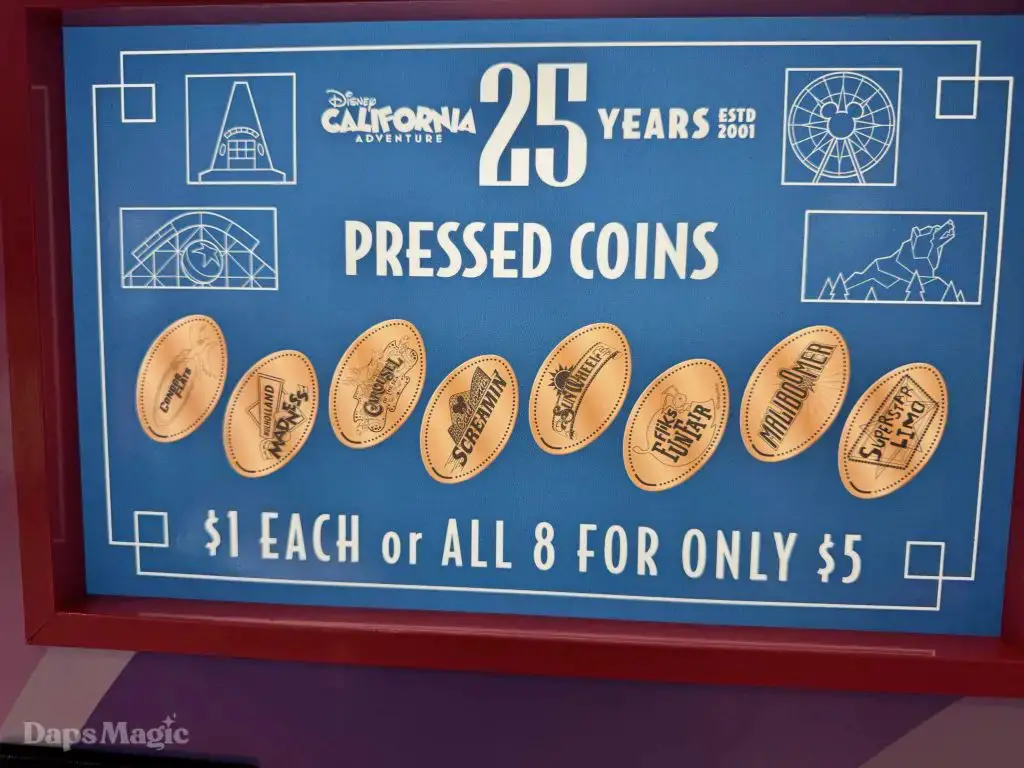 New Pressed Coins Celebrating Disney California Adventure’s 25th Anniversary Arrive at Disneyland Resort