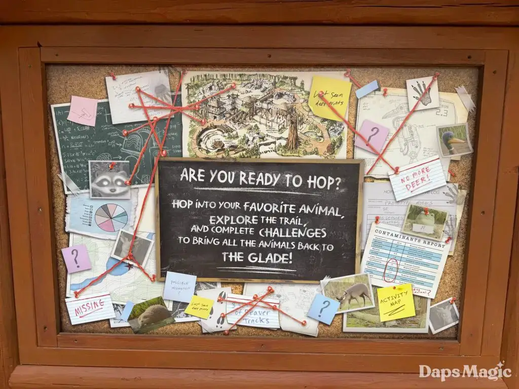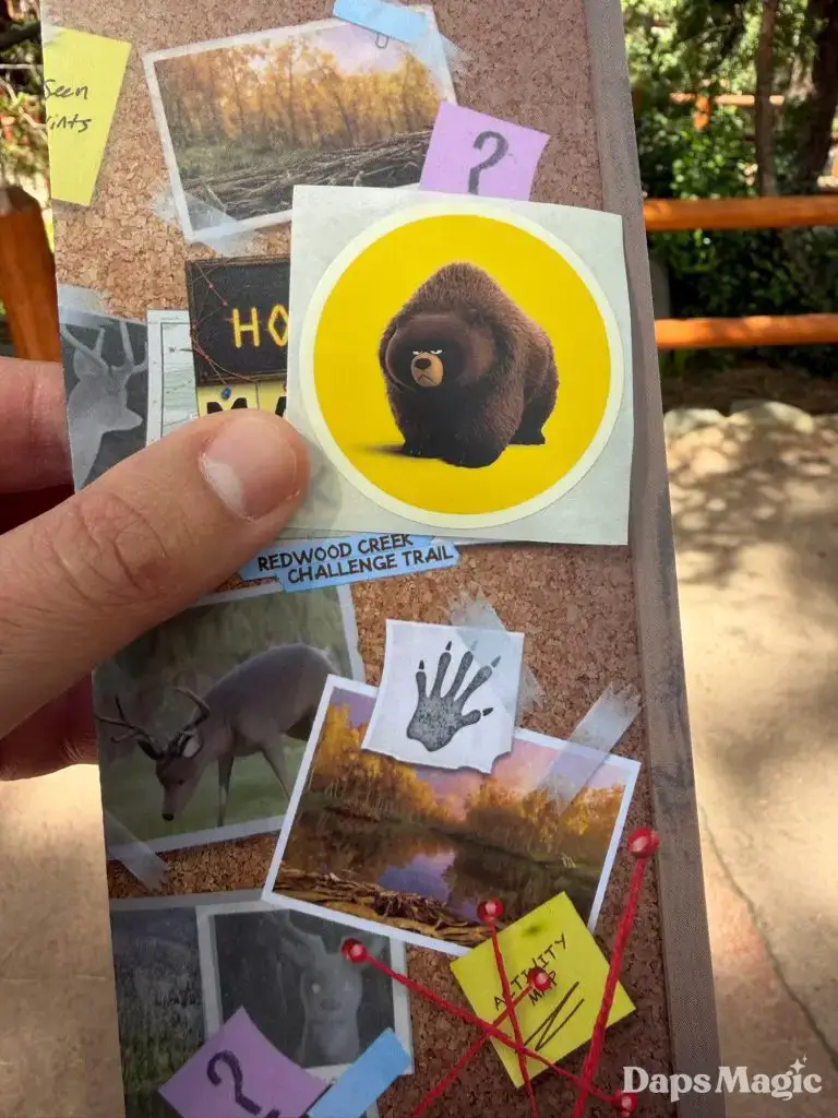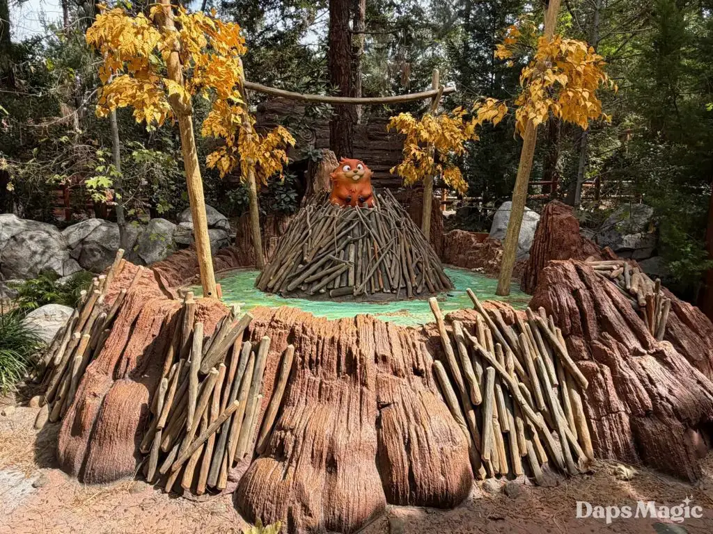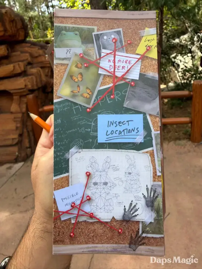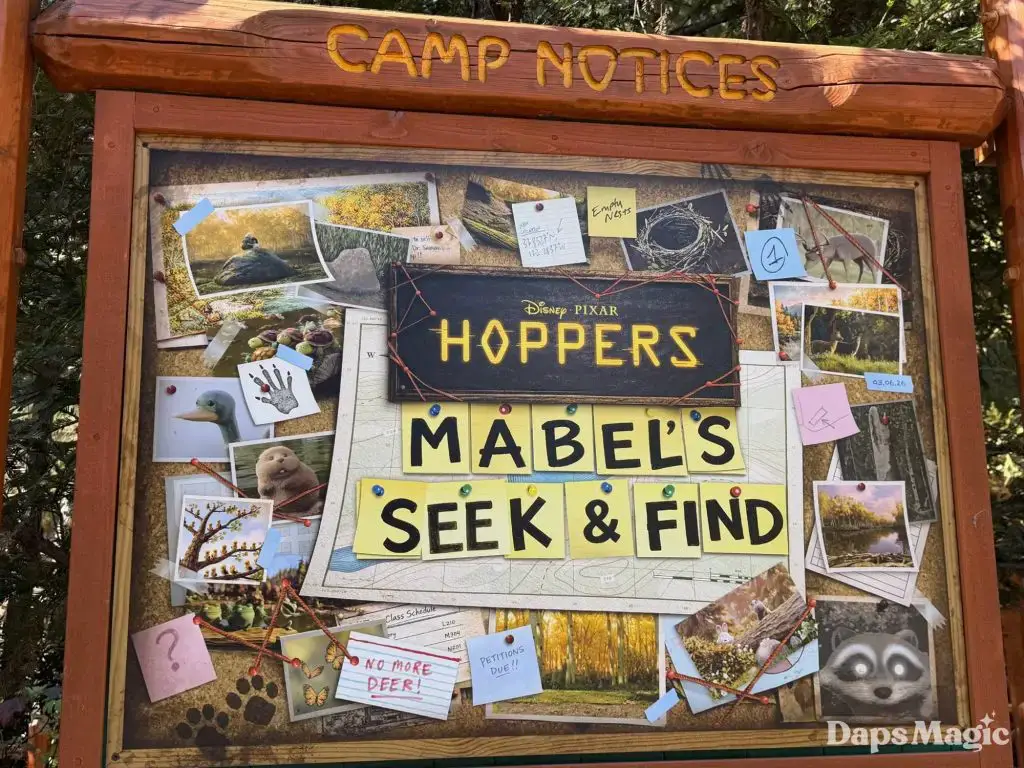 Pixar Animation Studios’ newest film, Hoppers, is now in theaters. With its arrival has come a new adventure at Disney California Adventure. Located on the Redwood Creek Challenge Trail, Mabel’s Seek & Find invites guests to embark on a little adventure, searching for elements from the film in the area with different tasks. Think of it as a Hoppers quest! Upon completion, guests can get a sticker of one of the characters from the film. The stickers feature King George, Ellen Bear, Insect Queen, or Tom Lizzard.