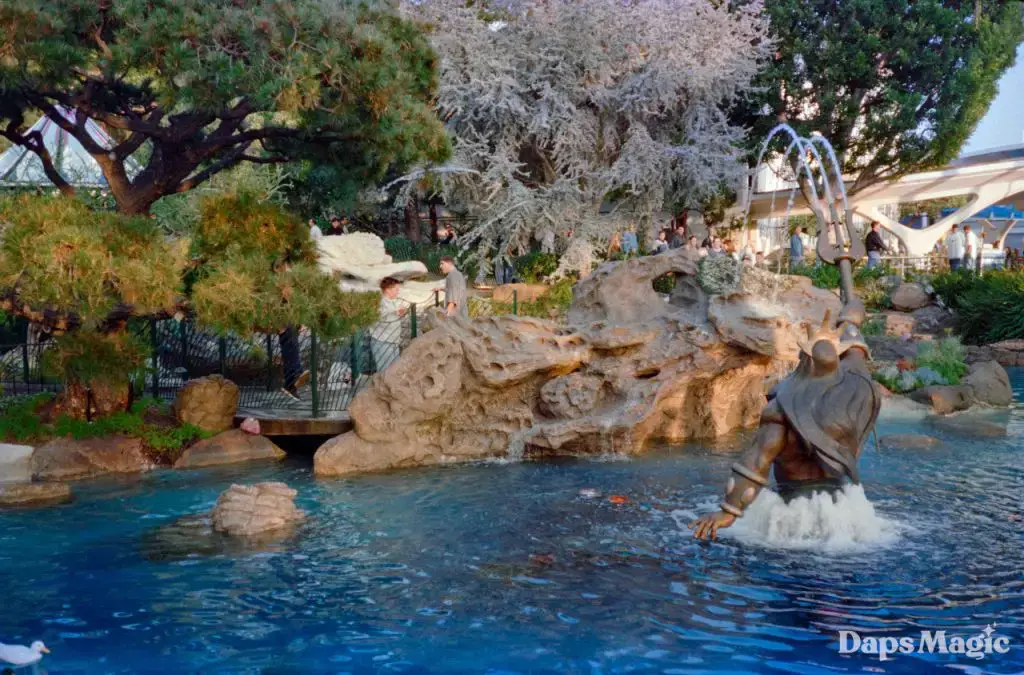 They certainly spent a lot of time on this, as it was some fourteen years between the opening of Epcot and the appearance of Triton Gardens. During this time, they considered the entrance to Tomorrowland and the entrance to Toontown. Once the decision had been made to place them in the somewhat overlooked Alpine Gardens area, the first thought was to create a Maleficent dragon sculpture, spewing water rather than flame into the pond.
