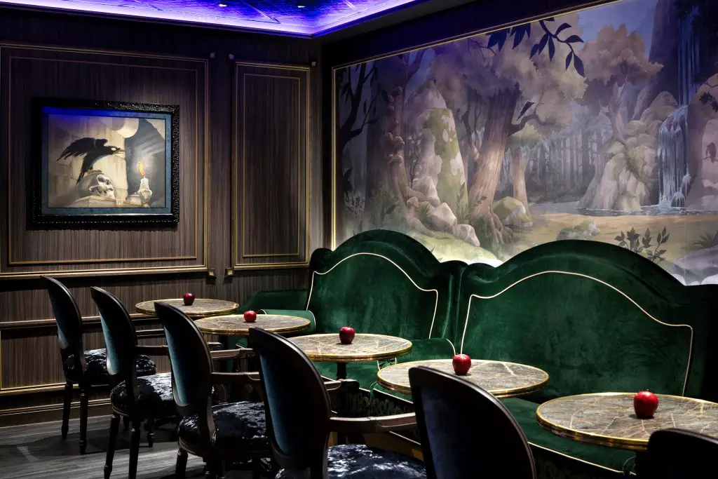 Venture into the shadowy corners of Town Square’s otherwise vibrant woodland and uncover a hideaway inspired by the enigmatic Evil Queen from the Disney classic film Snow White and the Seven Dwarfs. Concealed among the trees and adorned with rich details, this mysterious lounge invites you to savor wickedly tempting cocktails, mocktails and other “potions”—though thankfully, not a single poison apple in sight.