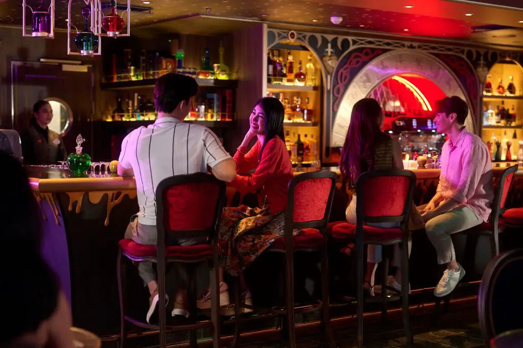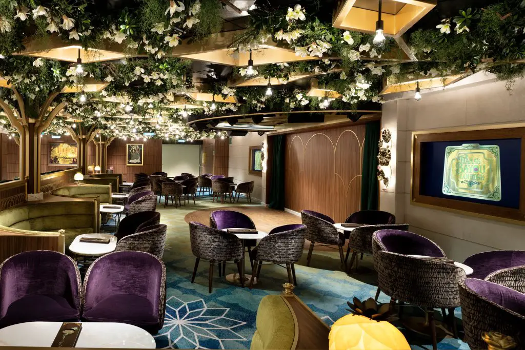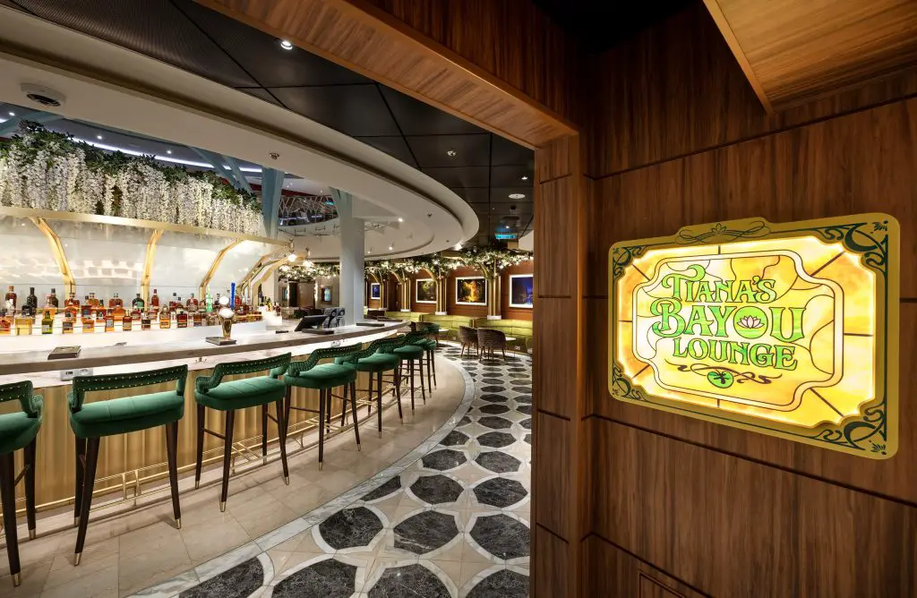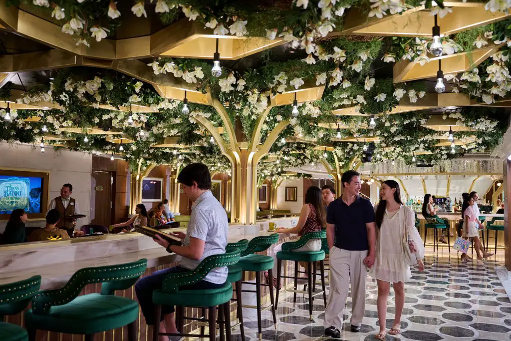 The Disney Adventure has arrived at its home port at Marina Bay Cruise Center Singapore. This eighth ship in the Disney Cruise Line fleet is also the largest. It also has many different stories that come to life from Disney, Pixar, and Marvel! Ahead of its maiden voyage on March 10, 2026, Disney has shared photos of different areas of the ship. Below is a look at some of the lounges and bars that can be enjoyed by guests aboard this beautiful new ship. They have been inspired by different Disney stories, including Peter Pan, Snow White and the Seven Dwarfs, and The Princess and the Frog, along with Luca from Pixar.