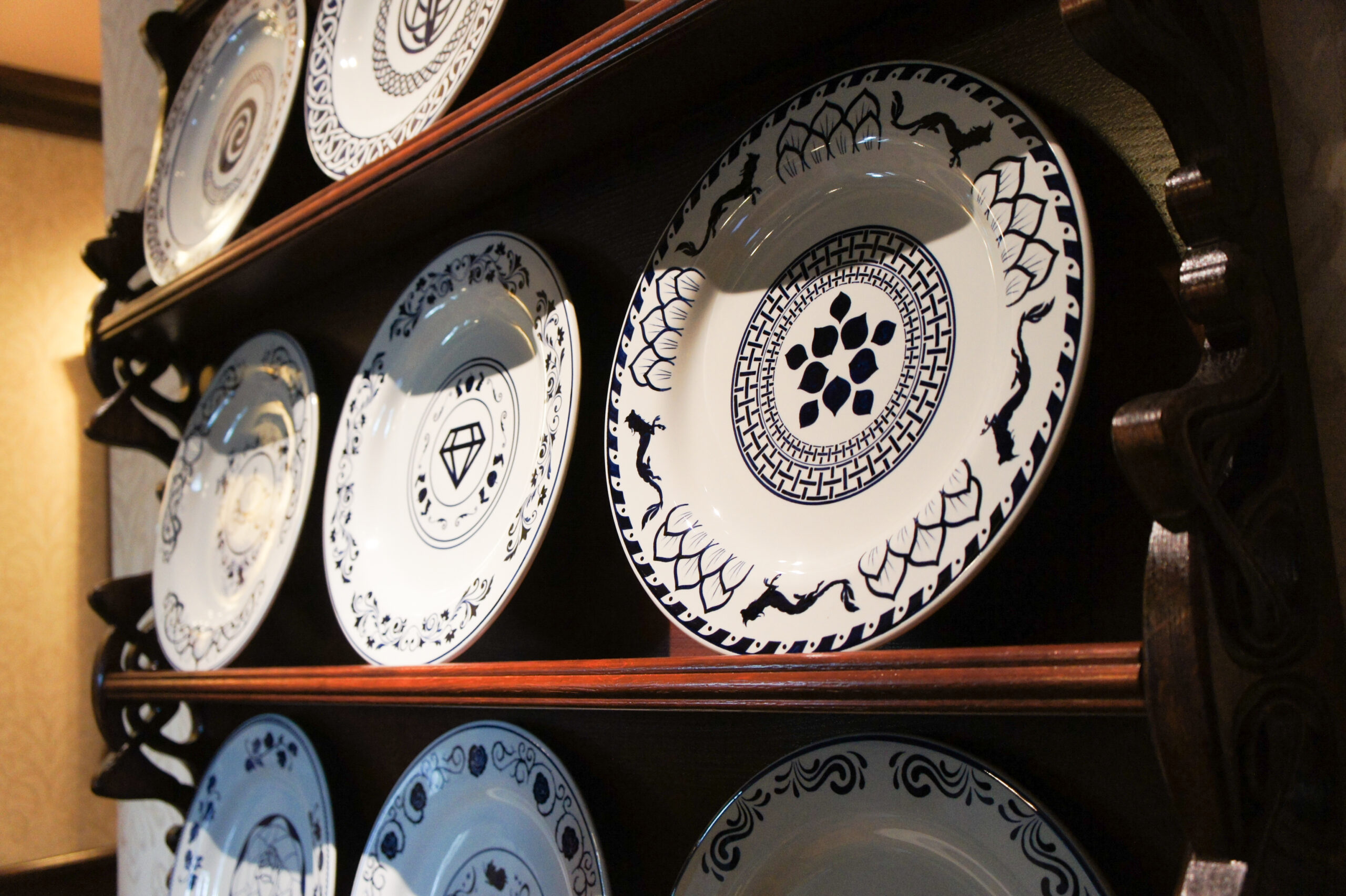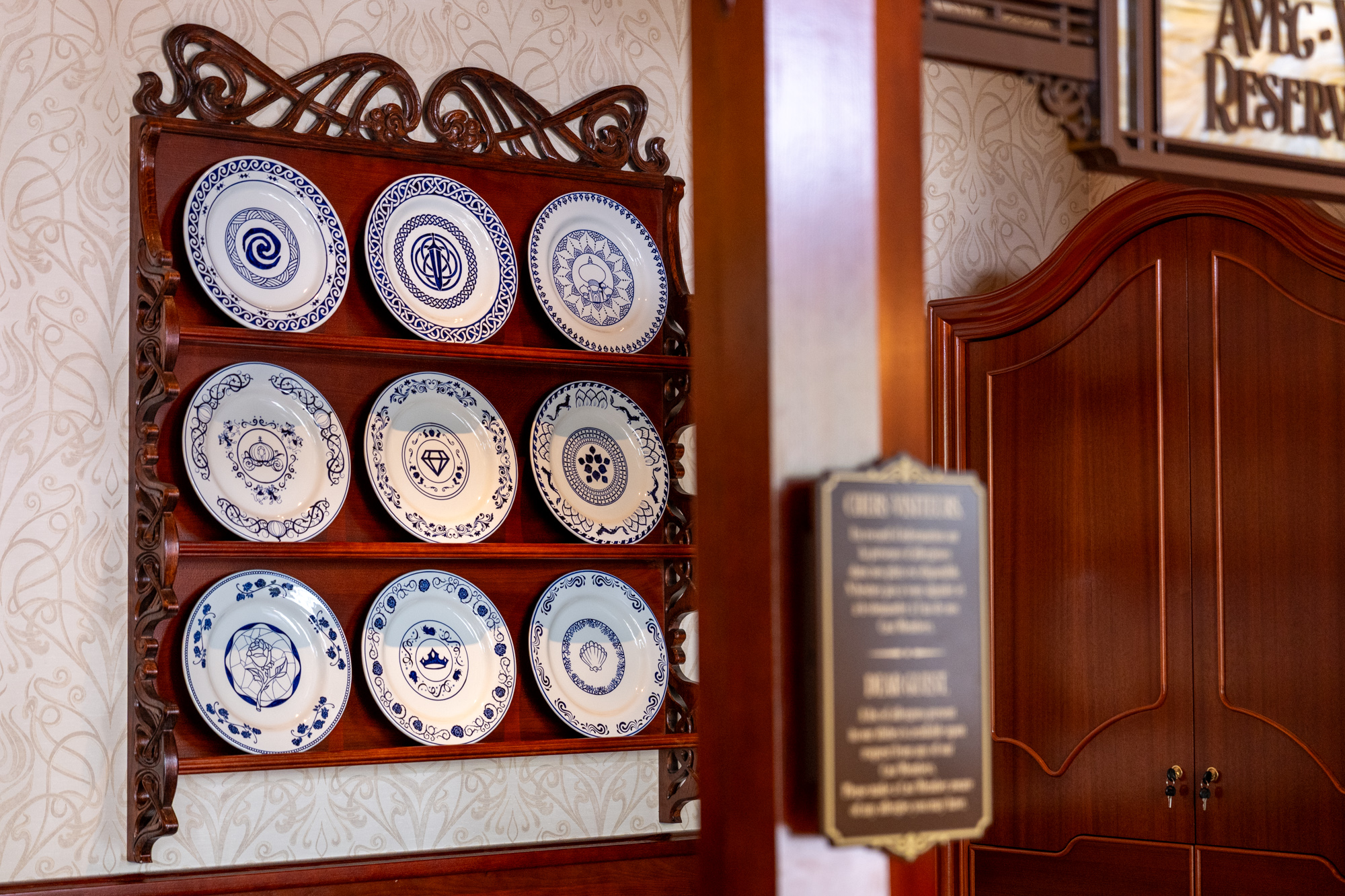 The first nod to the animated film can be found in the entrance hall, which serves as a connecting point between the restaurant and the lounge. Visitors can admire nine decorative porcelain plates, including one dedicated to Raya. This plate is decorated with the symbol of the Kumandra flower in the center, while its edges are embellished with silhouettes of the legendary Sisu and dragon scale motifs. These plates are the result of a collaboration between Walt Disney Imagineering, Walt Disney Animation Studios, and Royal Delft, the famous Dutch porcelain manufacturer and official supplier to the Dutch royal family, who hand-painted them.