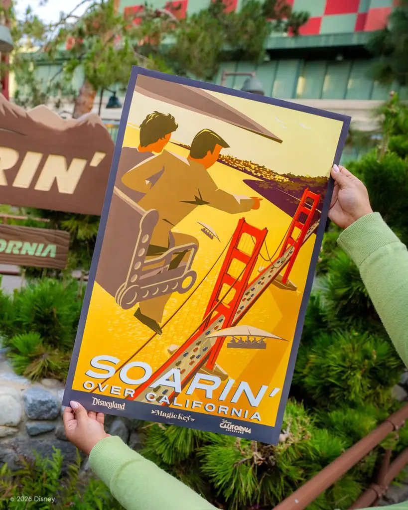 The poster comes as Soarin’ Over California gets an extended run this year at Disney California Adventure. This is because of the 25th anniversary of Disney California Adventure. It will continue to be offered in the park until it is replaced this summer by Soarin’ Over America for the celebration of the 250th anniversary of the United States of America.