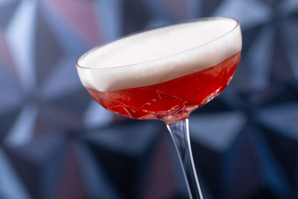Pink Peppercorn Clover Club – Elegant, Floral, Touch of Spice; Fords Gin, Dolin Blanc Vermouth de Chambéry, Raspberry, Pink Peppercorn, Lemon