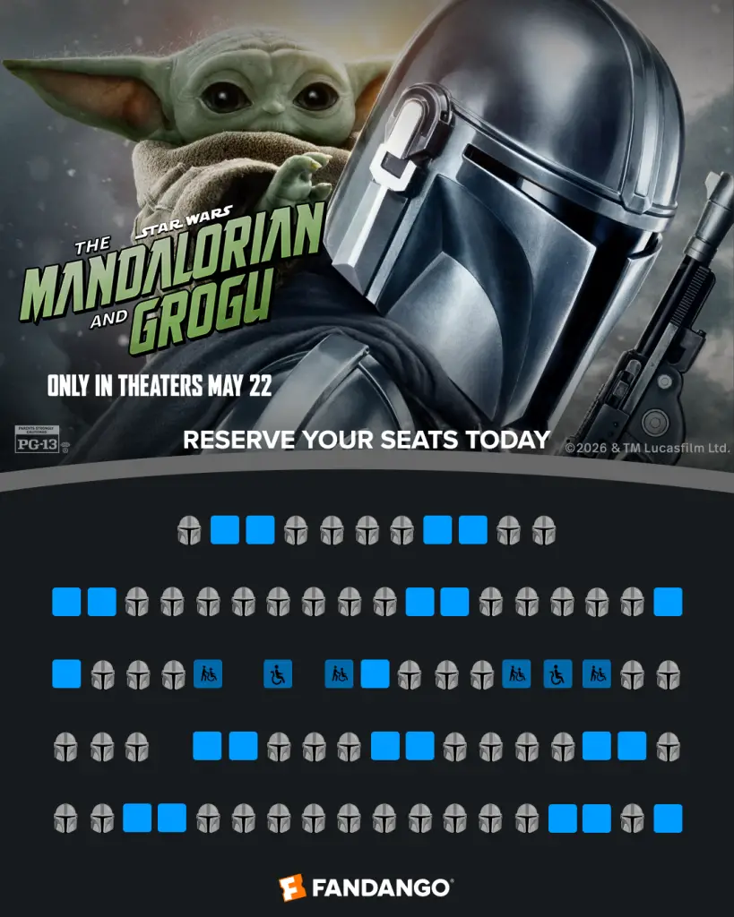 This morning at 6:00 AM PT, tickets went on sale for The Mandalorian and Grogu. This is the first new Star Wars film to arrive in theaters since Star Wars: The Rise of Skywalker in 2019. Tickets can be purchased at Fandango or through other websites for the May 22nd release (or May 21st non-midnight premiere).