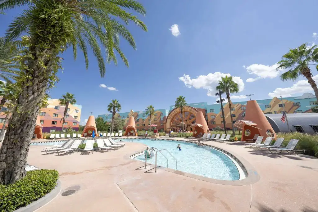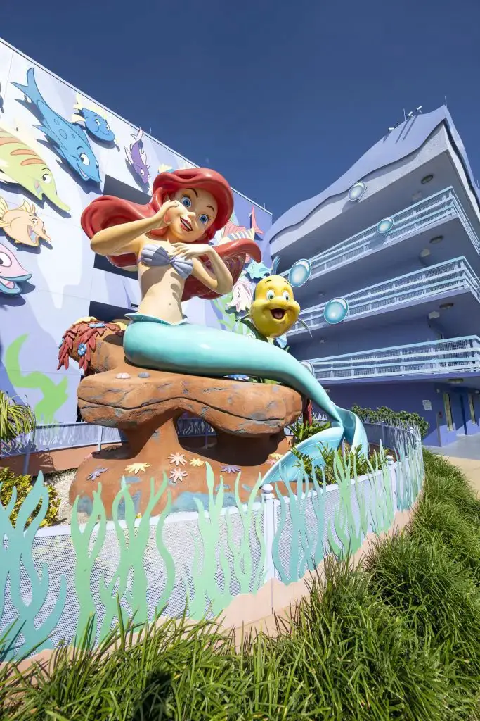 Disney’s Art of Animation Resort is one of the value resorts at Walt Disney World. It opened in 2012 and features four of Disney’s favorite animated films: Cars, The Little Mermaid, Finding Nemo, and The Lion King. Around the resort, fans can find some giant versions of items from the films. This includes a massive King Triton at the end of one of the ten buildings. In total, there are 1,984 rooms at Disney’s Art of Animation Resort. Of these, 1,120 are family suites capable of housing up to six people. These rooms include both living rooms and bedrooms. The remaining 864 have the standard value layout. On top of this, the resort is also connected to Walt Disney World with the Disney Skyliner.