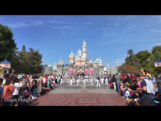 Disneyland Band with Mickey and Friends in Front of Sleeping Beauty Castle at Disneyland 4K